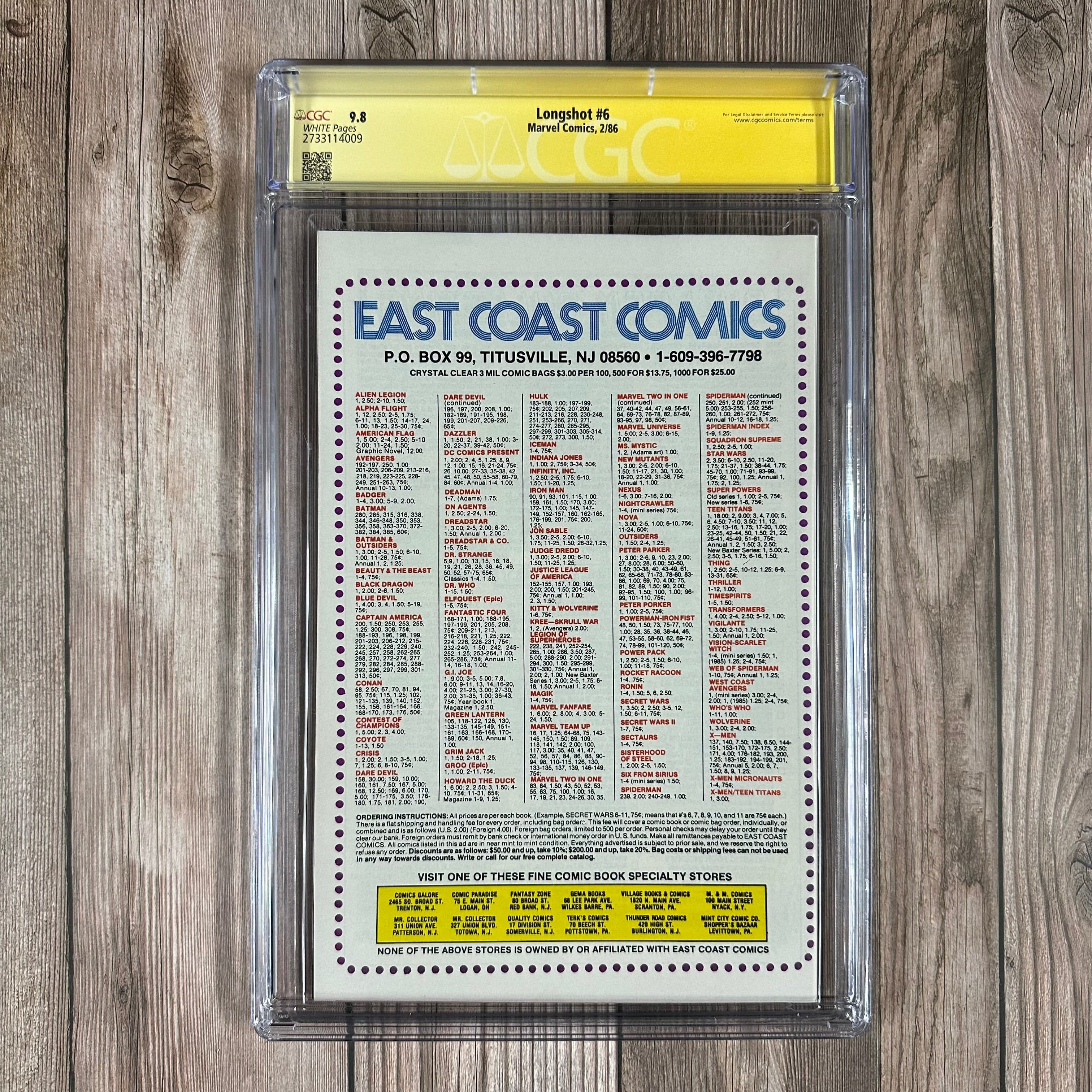 Longshot #6 CGC 9.8 WP SS Signed by Arthur Adams, 1st cover appearance of Mojo (cert:4009)