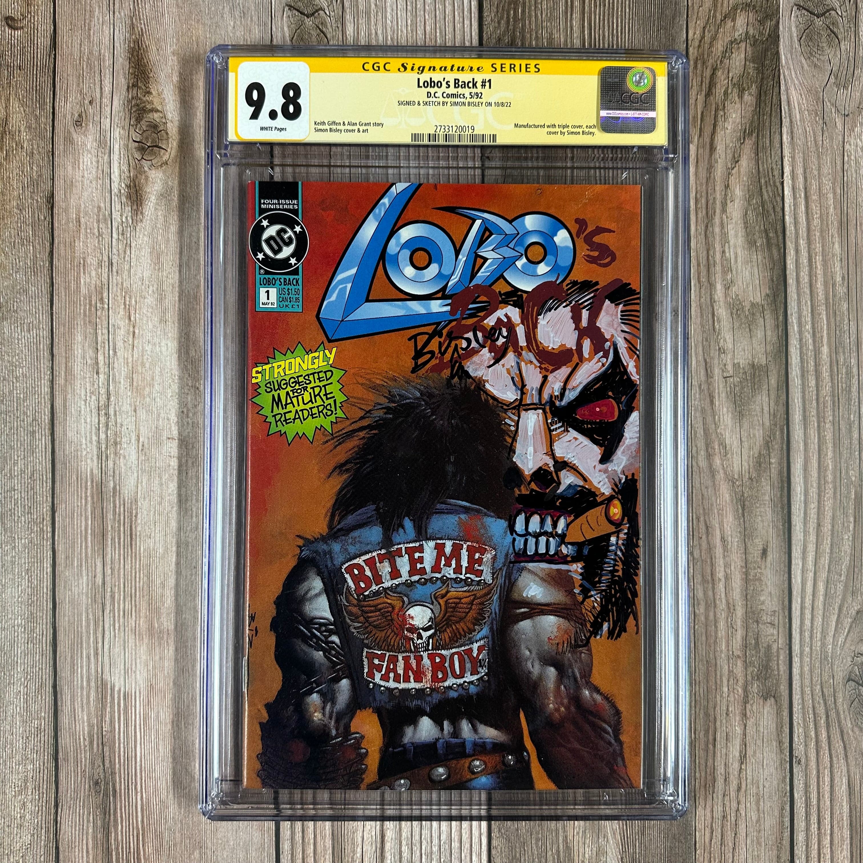 The Final Fragdown — Everybody's favorite bad boy of comics returns! This time, Lobo takes a job as a skip-tracer from his old friend Ramona, a skip-tracing hairdresser. His bounty? A galactic menace named Loo — who may just be as brutal as Lobo himself. Featuring all-out mayhem and humor by the classic creative team of Keith Giffen, Alan Grant, and Simon Bisley, this issue includes three full covers in one — no variant gimmicks here!