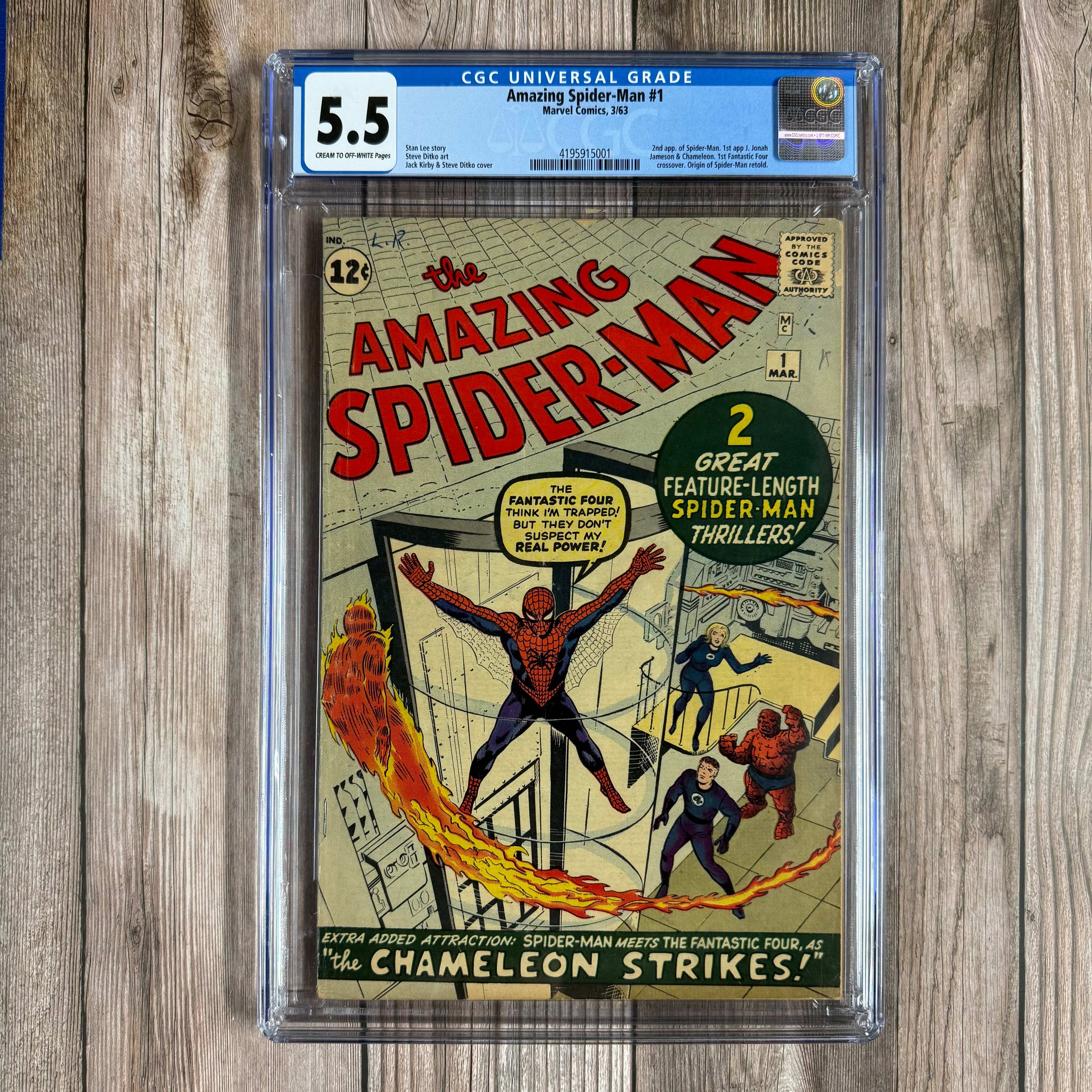 SPIDER-MAN / SPIDER-MAN VS. THE CHAMELEON! The FIRST issue of Amazing Spider-Man! The amazing Spider-Man swings into his very first starring series, fresh off his debut in Amazing Fantasy #15. In one of his earliest adventures following Uncle Ben's death, Spider-Man must save a crew of astronauts aboard a malfunctioning spaceship. Then, Spider-Man tries to join the Fantastic Four and ends up battling the Chameleon!