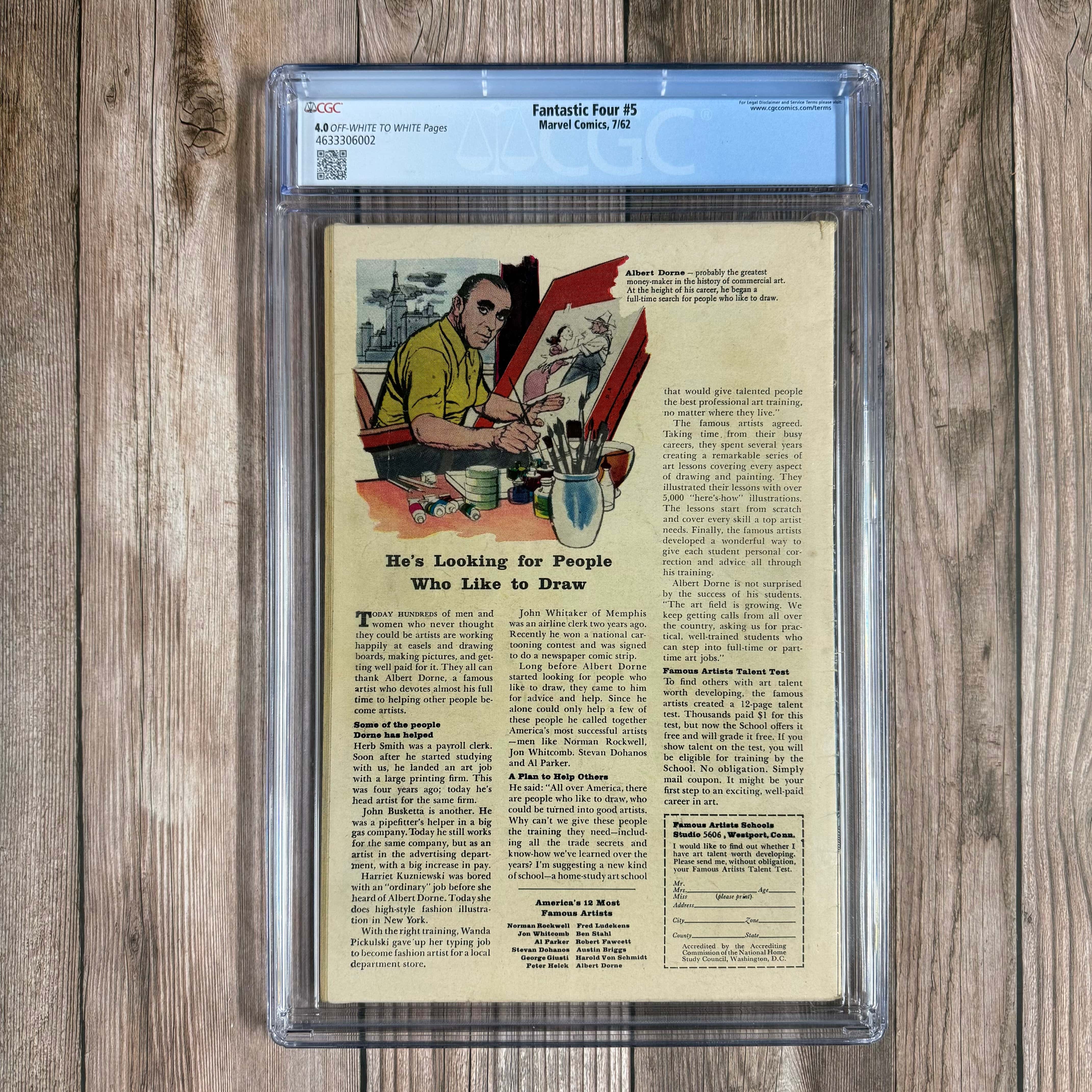 Fantastic Four #5 CGC 4.0 1st appearance and origin of Doctor Doom, 1st appearance of a Doombot *Trade Avail.