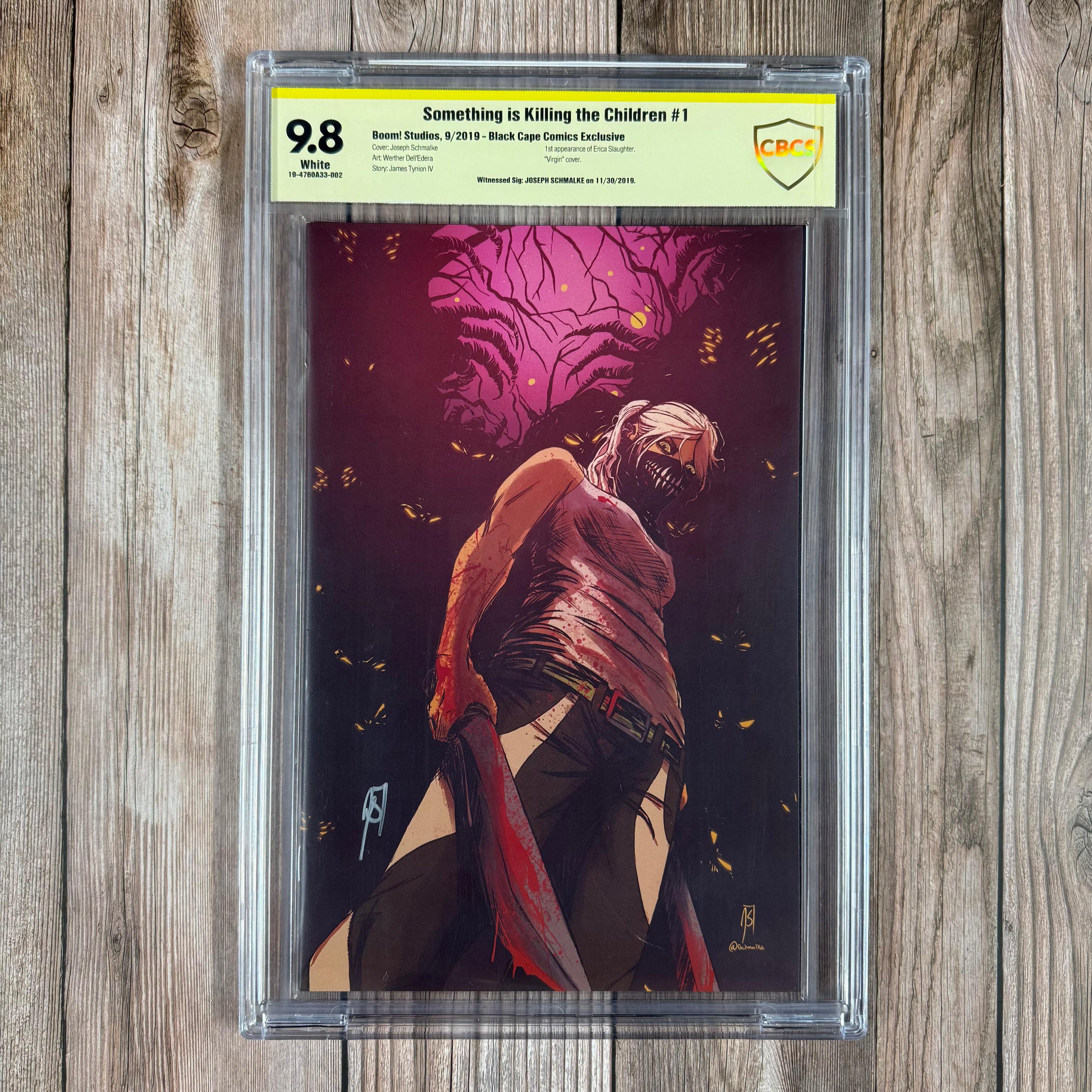 Something Is Killing the Children #1 CBCS 9.8 WP Witnessed Signature of Joseph Schmalke Black Cape Comics Exclusive Virgin Cover, 1st appearance of Erica Slaughter, limited to 500 (cert:0002)