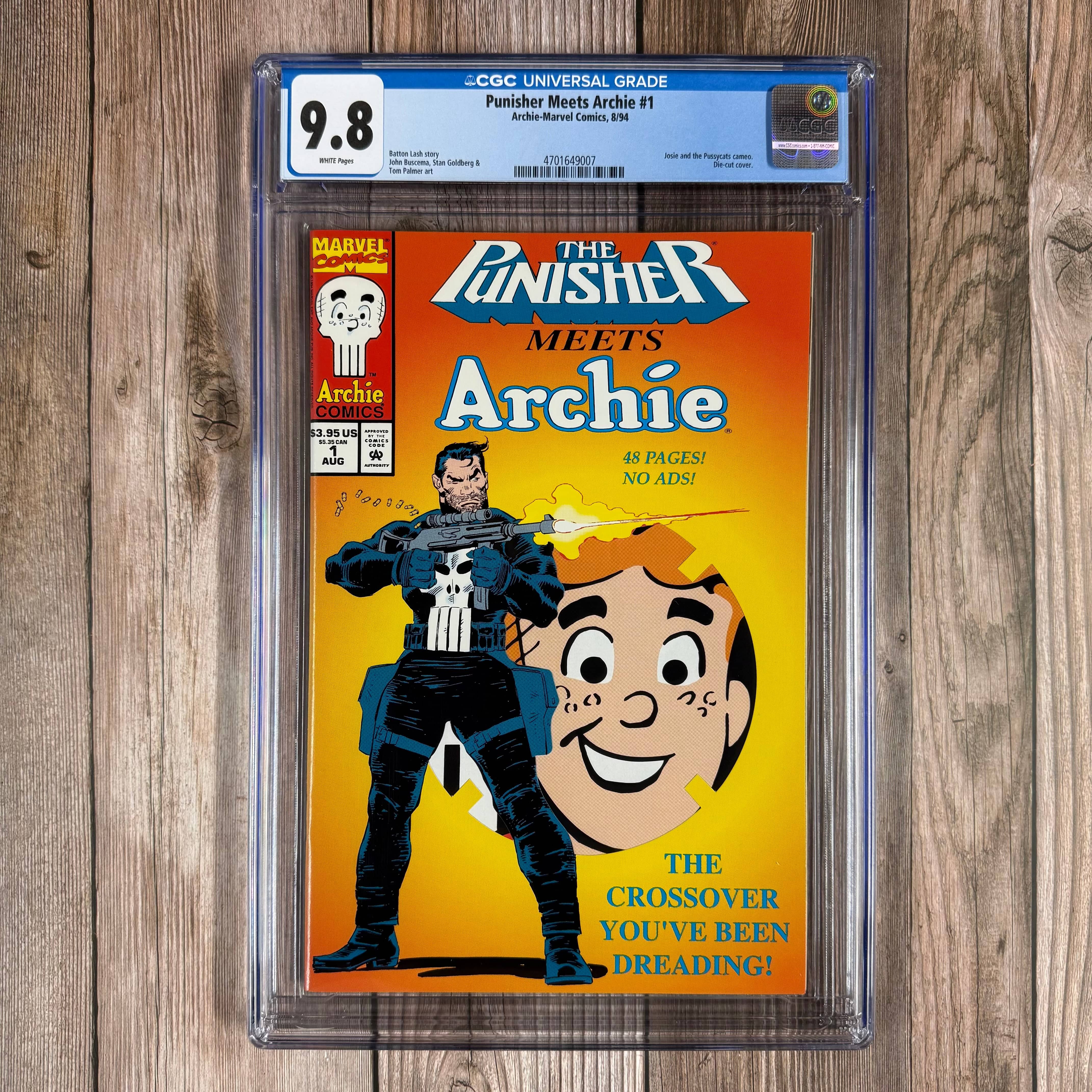 Published by Marvel Comics as The Punisher Meets Archie and by Archie Comics as Archie Meets The Punisher . 48 pages of the craziest crossover ever to occur! Look at the title and you'll know we ain't kiddin'. The Punisher has set Archie in his sights and Riverdale High School will never be the same! The Punisher will never be the same! Cross-company calamity featuring the works of top talents from both Archie and Marvel.
