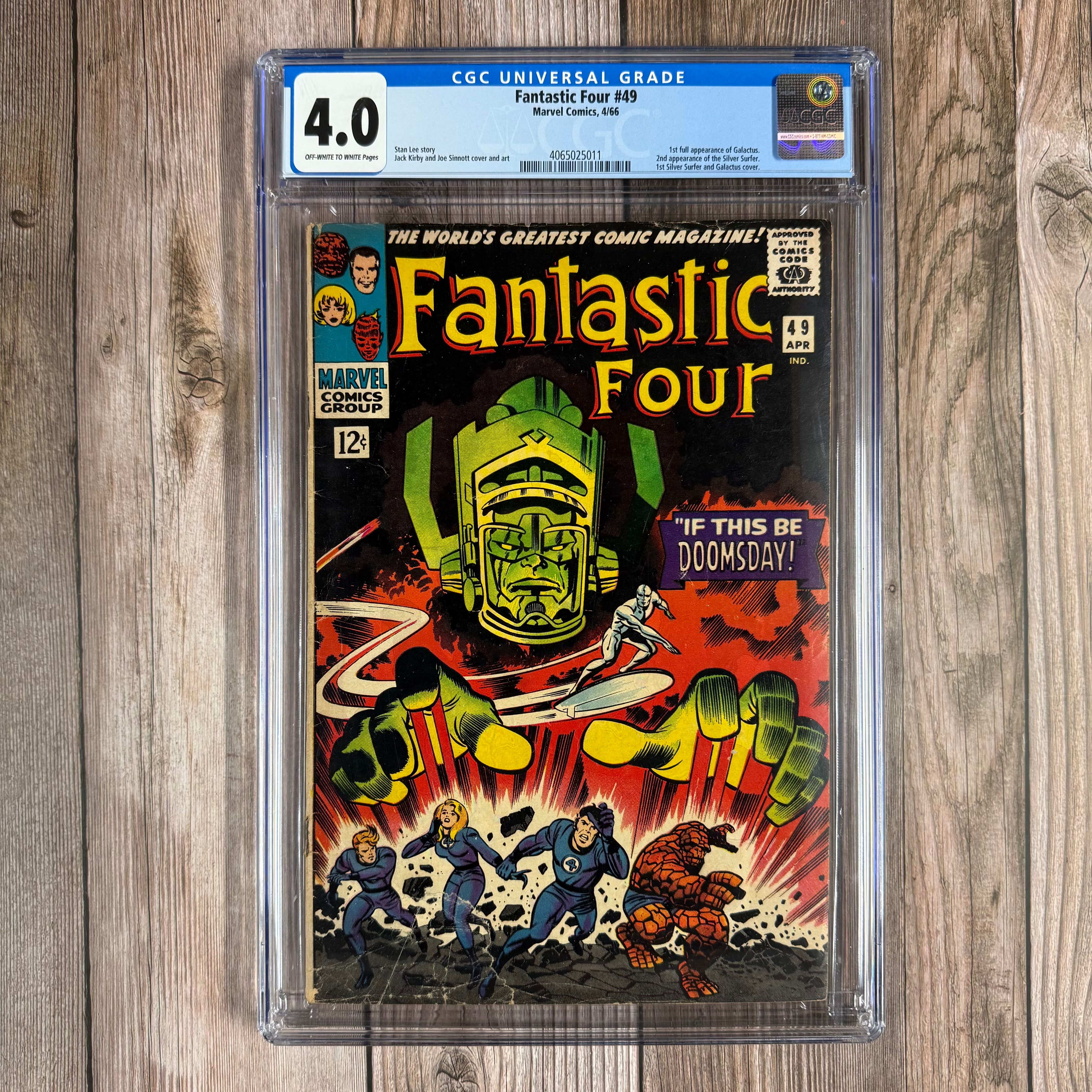 IF THIS BE DOOMSDAY! With Galactus on Earth, the Watcher tries to appeal to the planet eater to leave Earth alone, when diplomacy doesn't work Johnny and Thing try to attack Galactus to no effect. Meanwhile, the Silver Surfer slowly gains consciousness from the Thing's punch and falls through the skylight of Alicia Master's apartment. Sensing a wounded and lonely being, Alicia offers the Silver Surfer her sympathy and assistance.