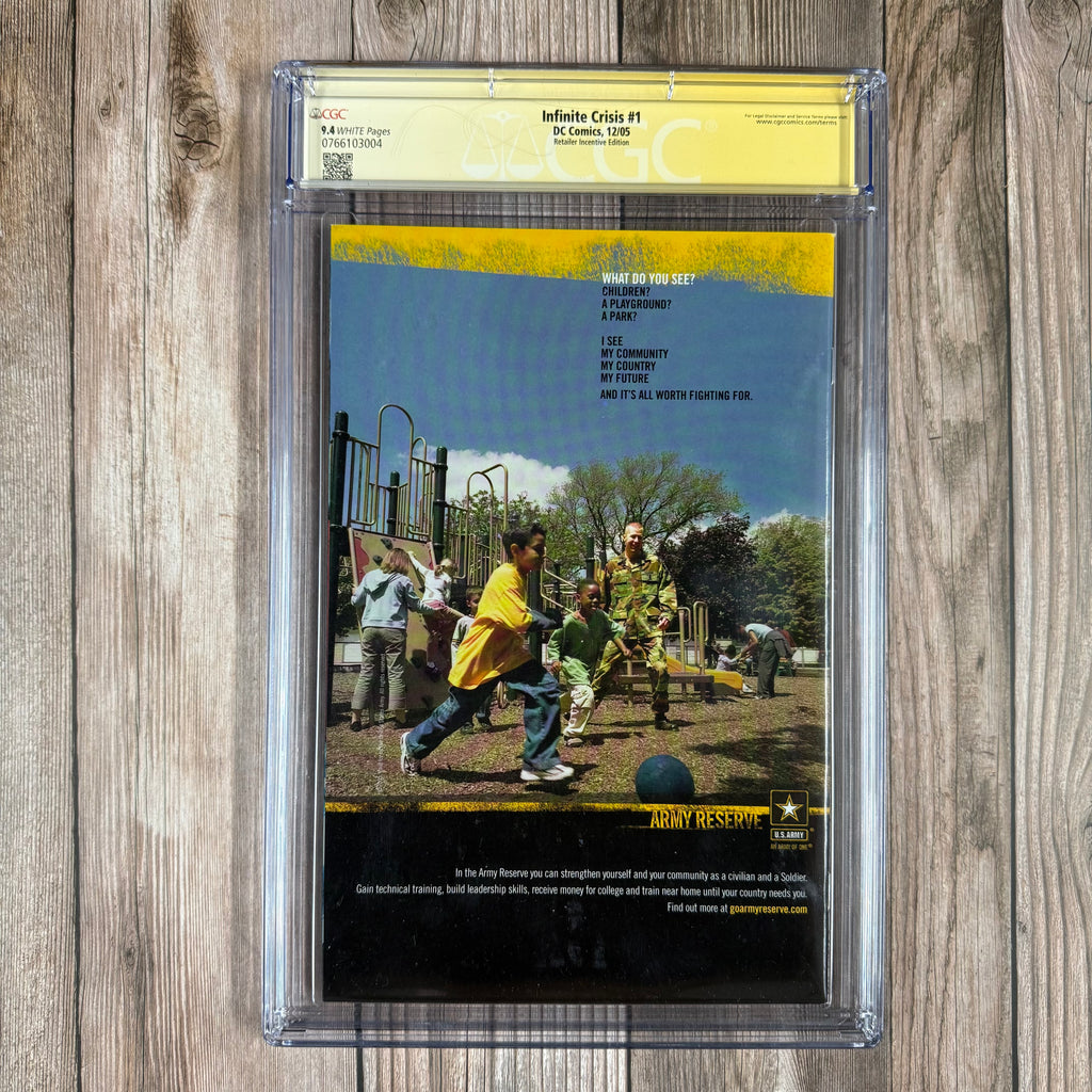 It's finally here: the comics event so massive that it built over the first half of 2005, through COUNTDOWN, DAY OF VENGEANCE, RANN/THANAGAR WAR, VILLAINS UNITED and THE OMAC PROJECT! Prepare for the dawn of the DCU's darkest day in INFINITE CRISIS, a 7-issue miniseries written by Geoff Johns (GREEN LANTERN, JSA) with art by Phil Jimenez (OTHERWORLD, Uncanny X-Men) & Andy Lanning (OTHERWORLD) and covers by George Pérez (CRISIS ON INFINITE EARTHS) and Jim Lee (BATMAN, SUPERMAN) & Sandra Hope! The world's greatest heroes stand divided. If recent events don't tear them apart, the heroes may fall at the hands of an enemy from the past long since thought gone!