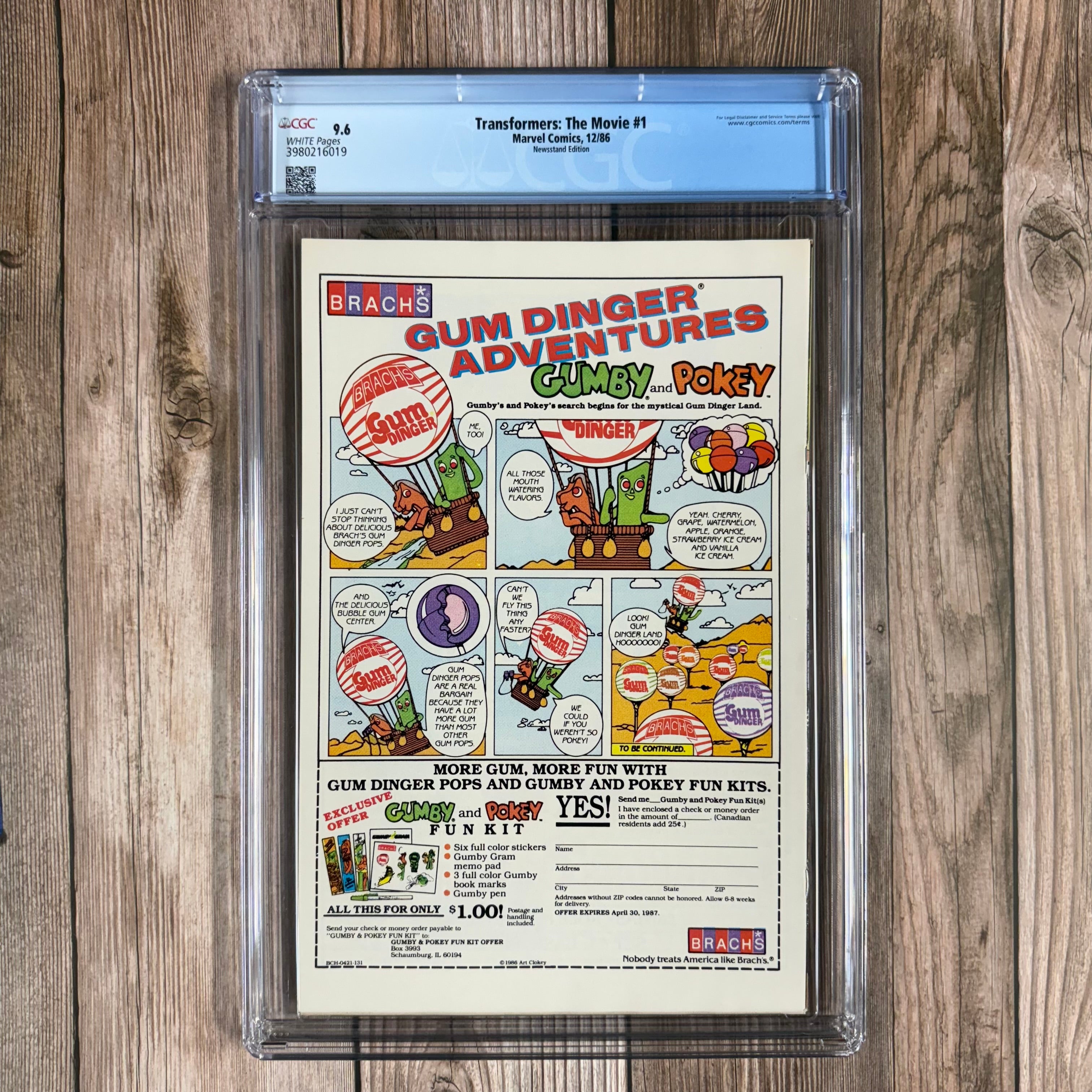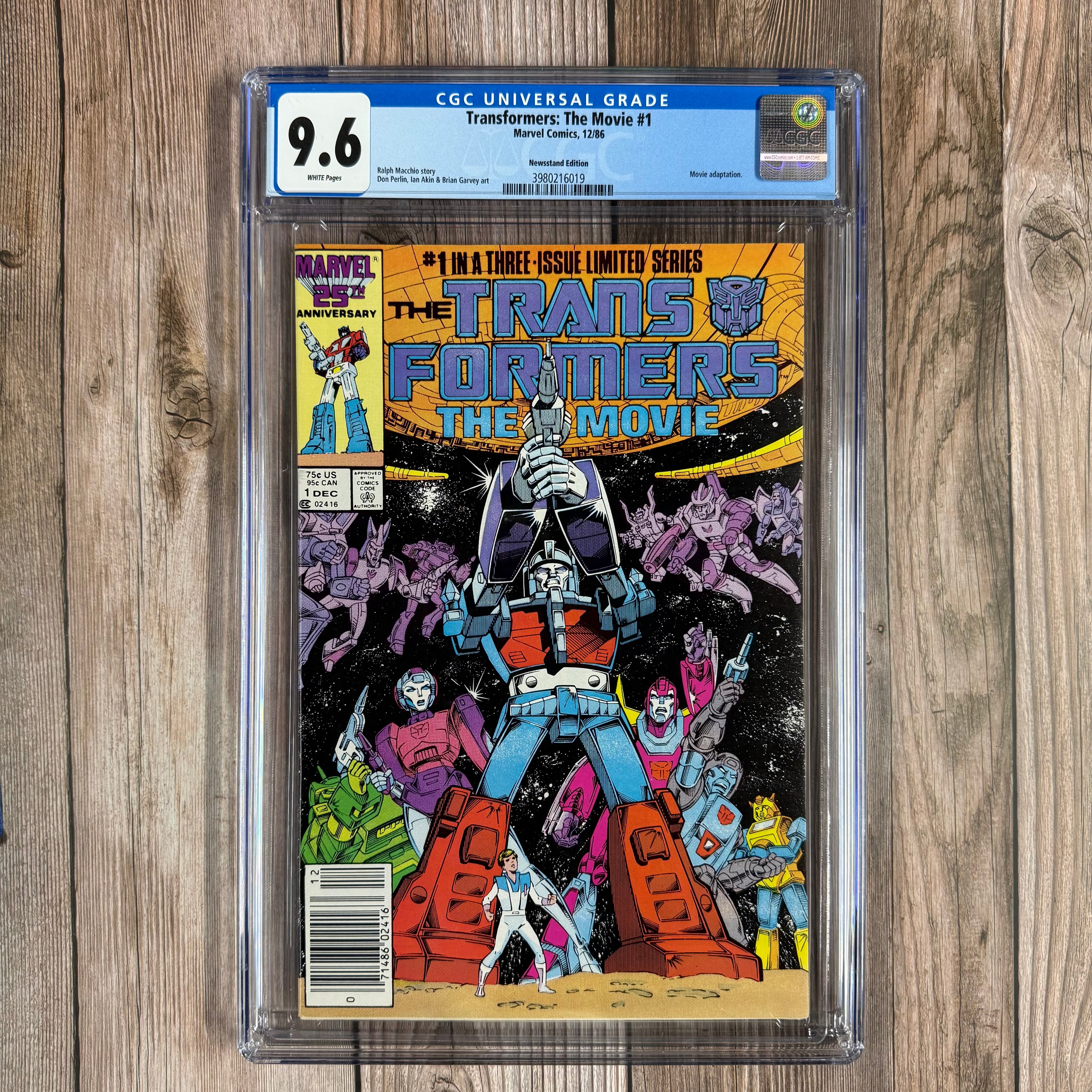 Transformers: The Movie #1 CGC 9.6 WP 1st U.S. comic appearance of Galvatron, Arcee, Unicron (planet mode), and Astrotrain, NEWSSTAND EDITION