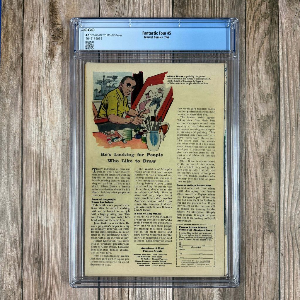 Fantastic Four #5 CGC 4.5 1st appearance and origin of Doctor Doom, 1st appearance of a Doombot *Trade Avail.