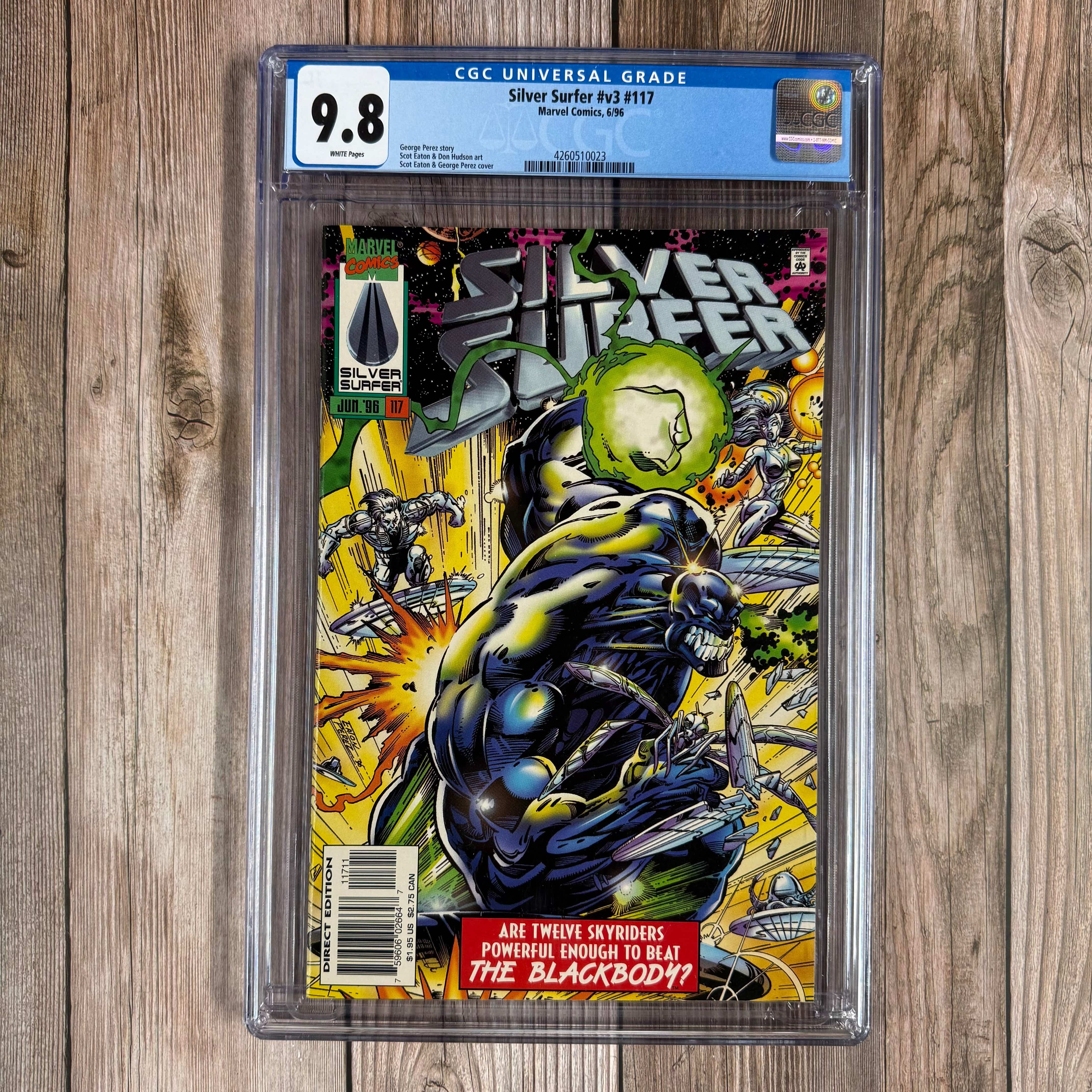 The Silver Skyriders face annihilation as a dark new enemy is unleashed. Born from corrupted cosmic power, the Blackbody Surfer hunts the Skyriders with relentless fury, expanding Silver Surfer lore with the debut of this ominous counterpart.