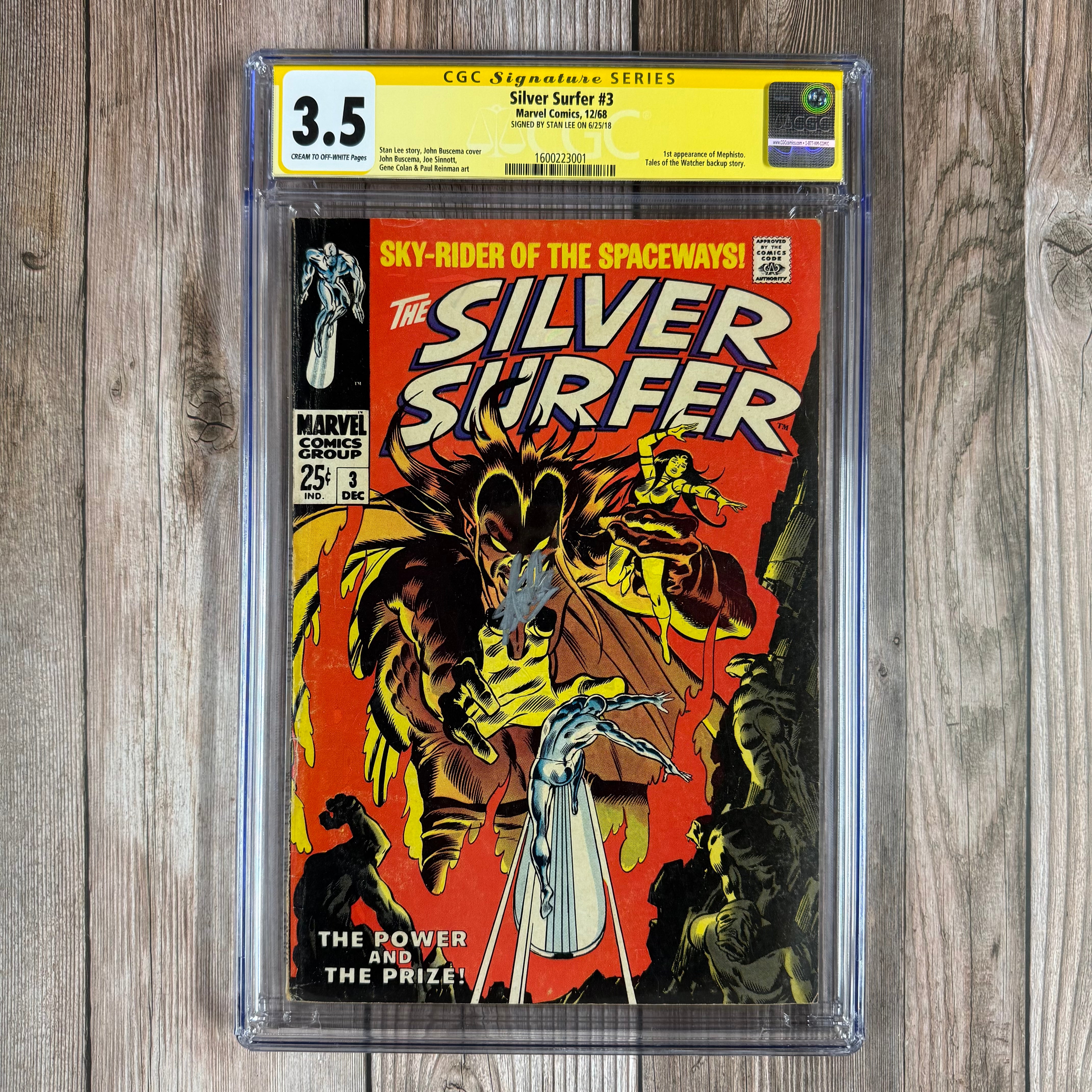 Silver Surfer #3 CGC 3.5 SS Signed by Stan Lee, 1st appearance of Mephisto (cert:3001)