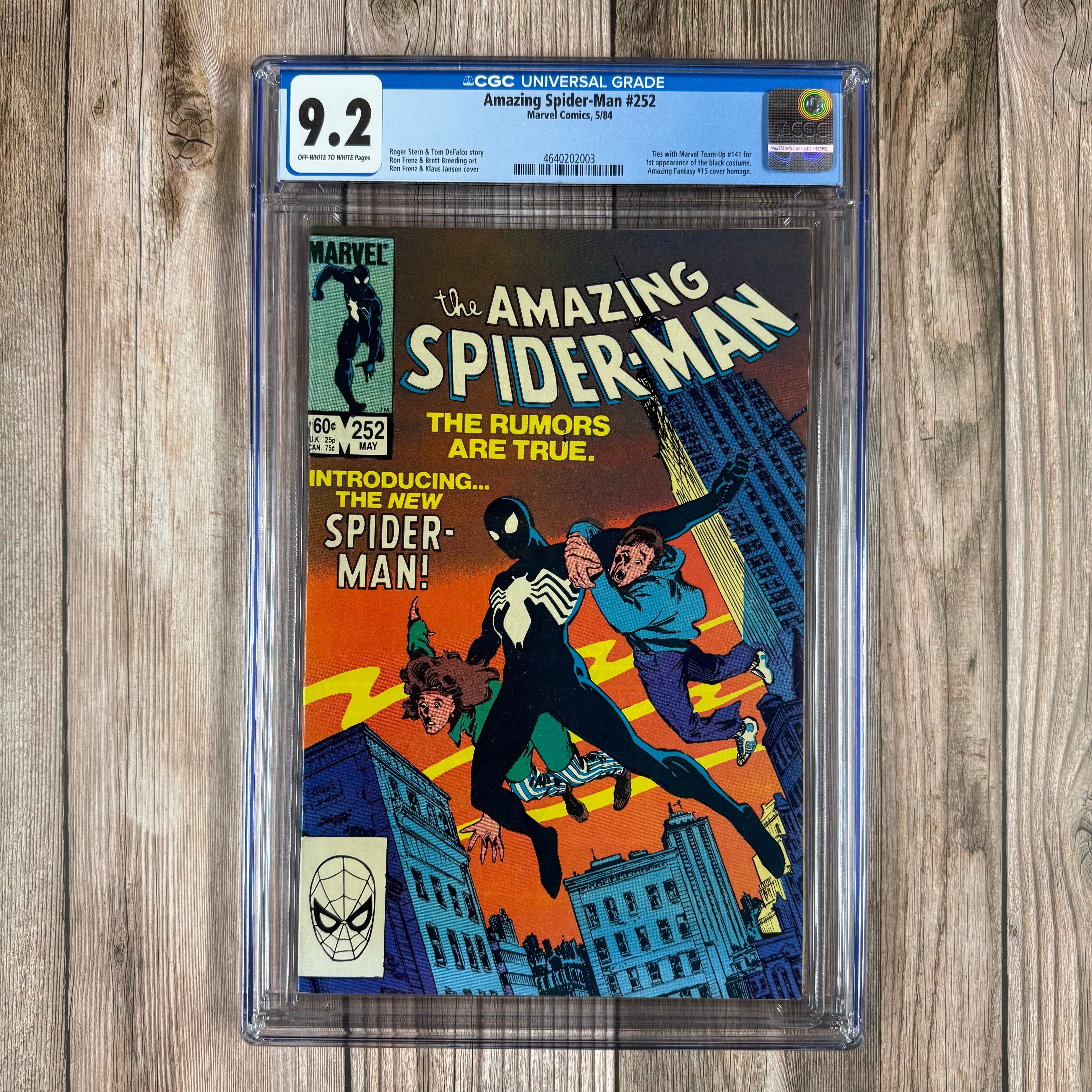 Amazing Spider-Man #252 CGC 9.2 1st appearance of Spider-Man's black costume, Cover Homage to Amazing Fantasy #15
