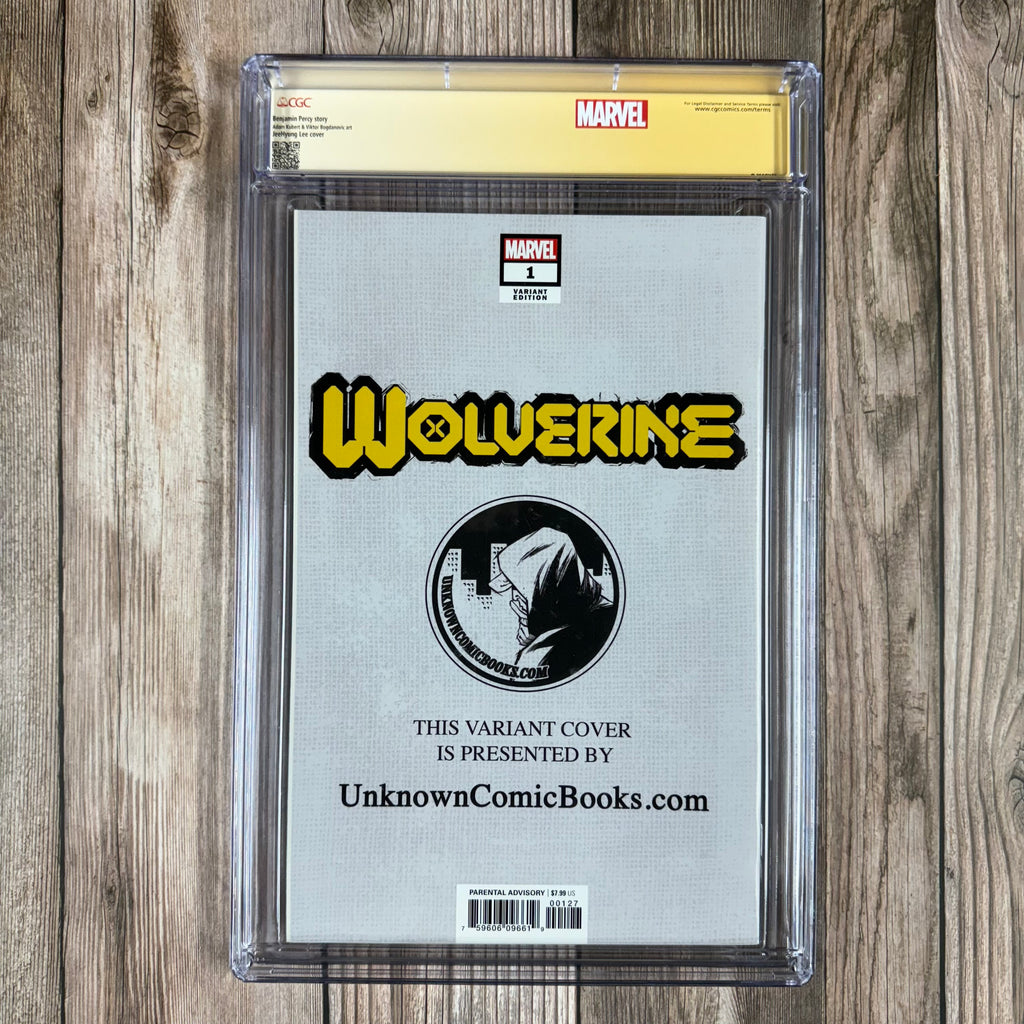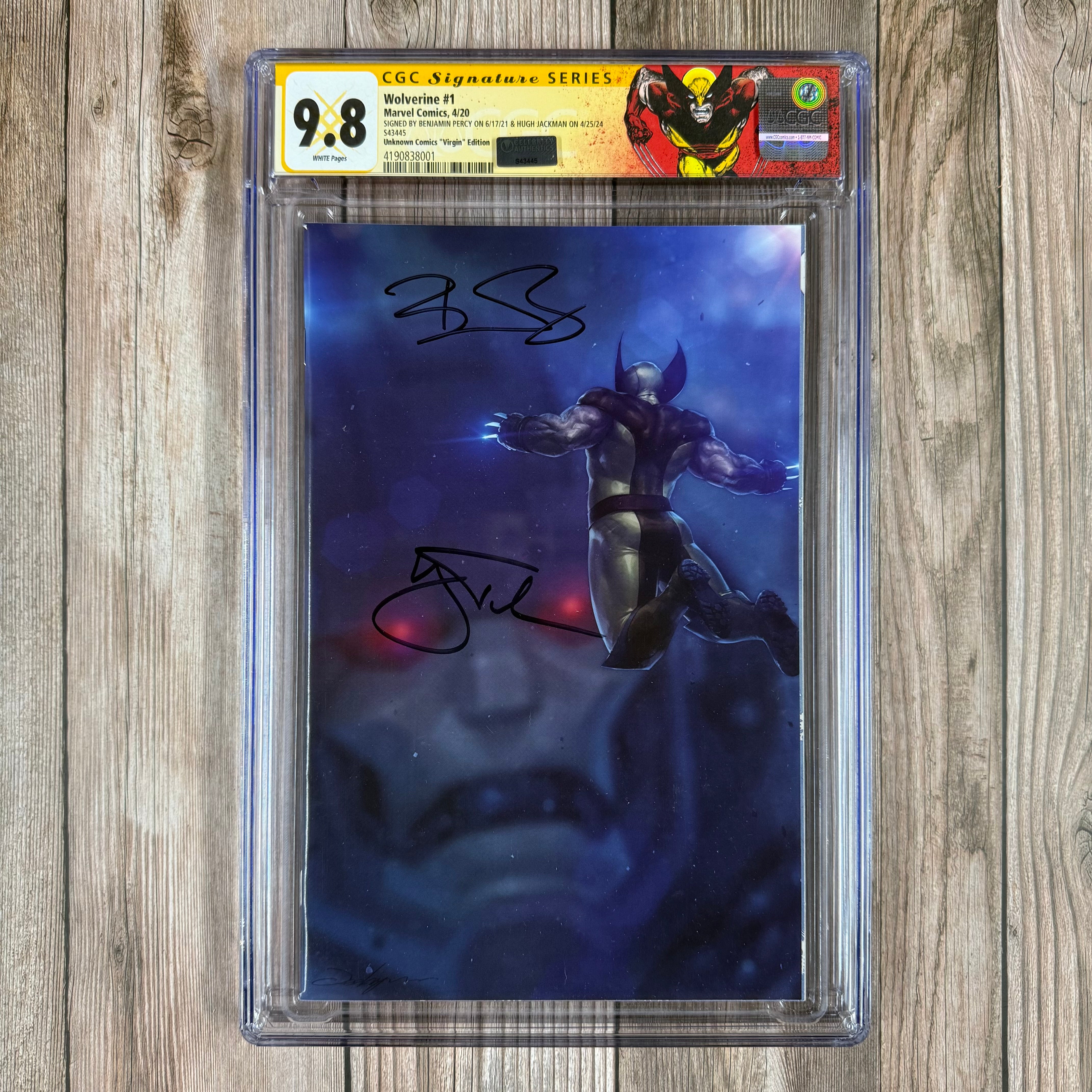 Wolverine #1 CGC 9.8 WP Custom Label, SS Signed by Benjamin Percy and Hugh Jackman, Unknown Comics Virgin Edition, Celebrity Authentics S43445 (cert:8001)