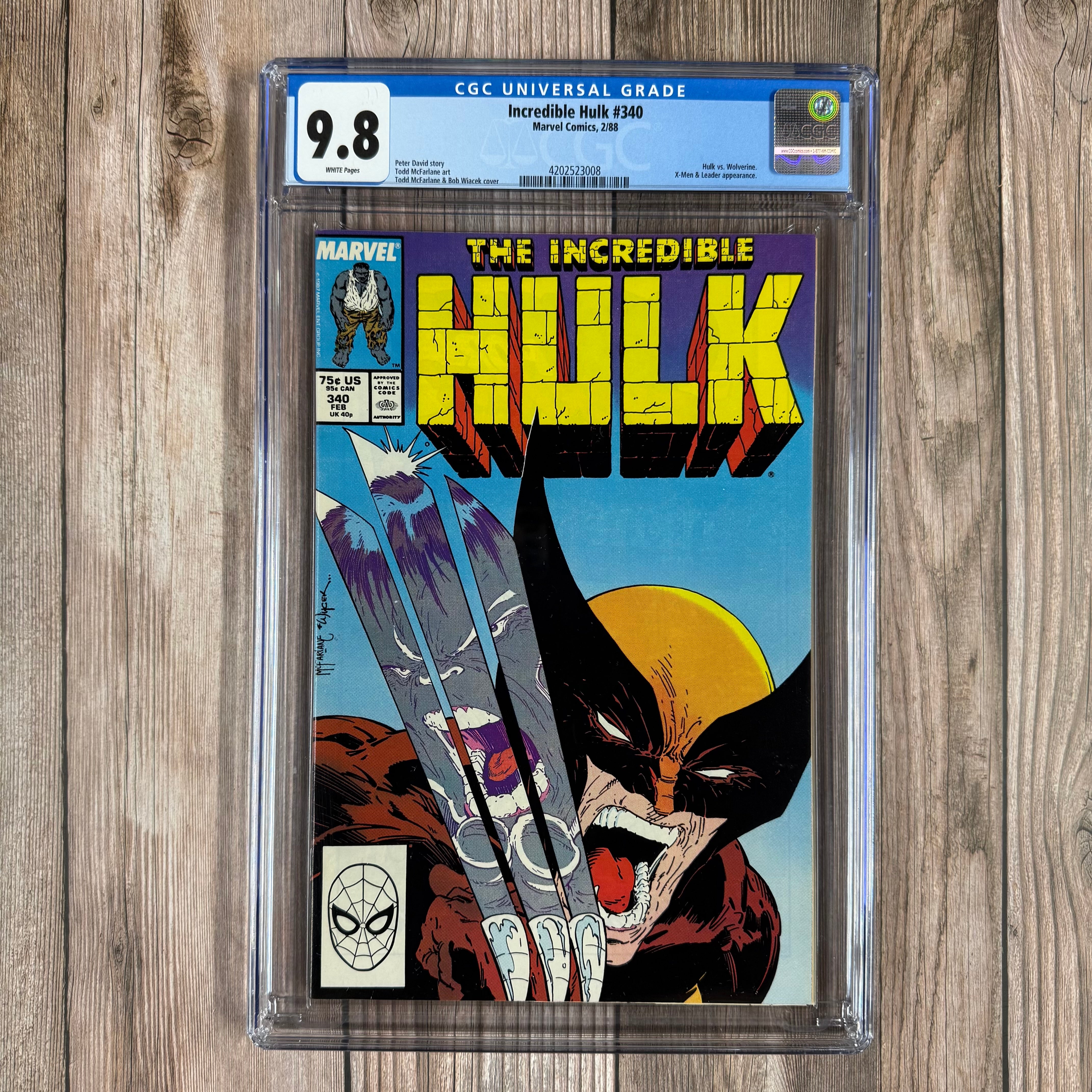 *Incredible Hulk #340* features the unforgettable battle between Hulk and Wolverine, one of the most iconic clashes in Marvel history. This issue showcases Todd McFarlane’s cover art, which has become a fan favorite. The issue is significant for its portrayal of Wolverine’s claws and the Hulk’s relentless power, as the two heroes come into direct conflict. Written by Peter David, this issue is an important moment in both the Hulk and Wolverine storylines, with McFarlane’s distinctive artwork cementing this issue’s place as a classic. The character-driven story of Hulk’s struggle with his inner rage adds depth to the action-packed confrontation.
