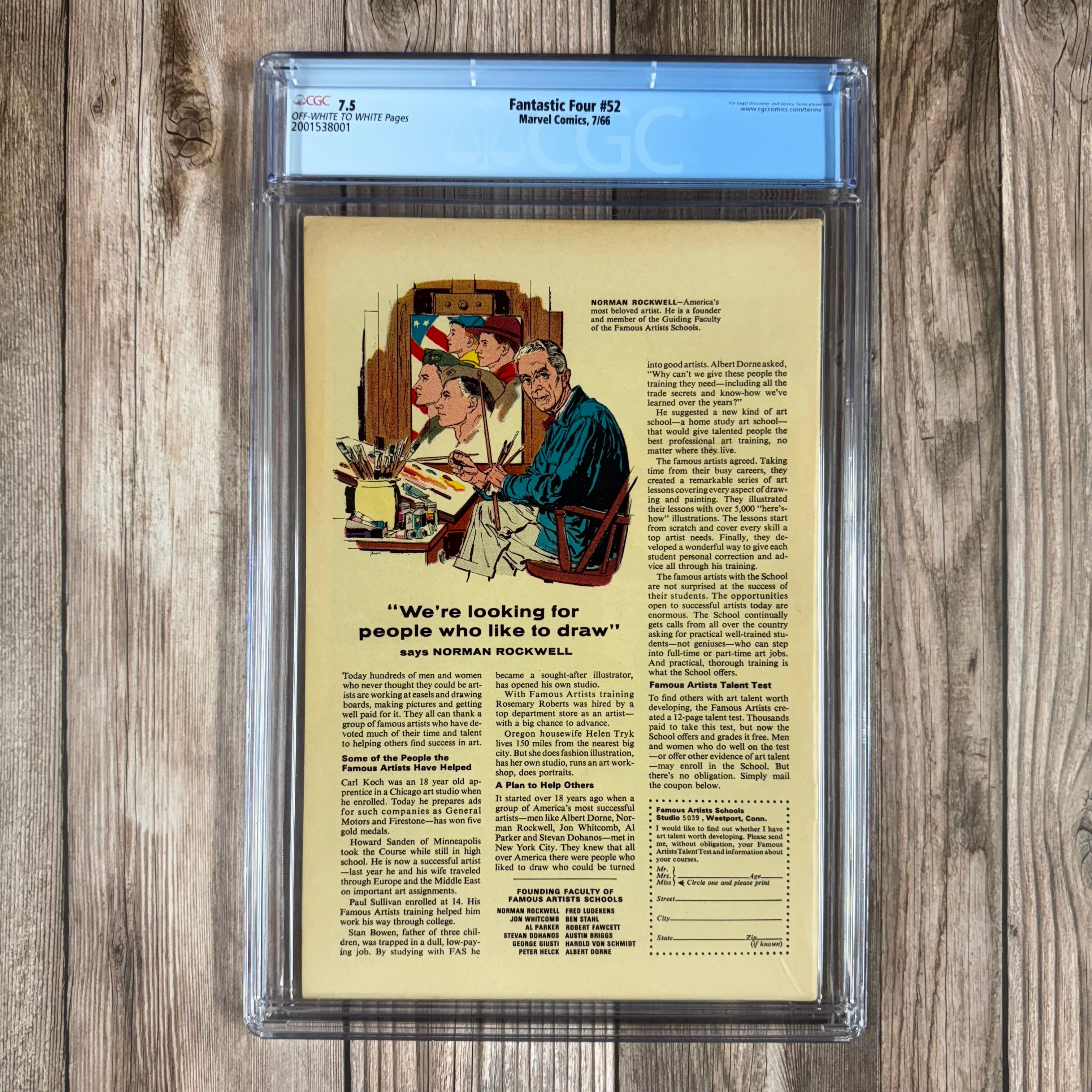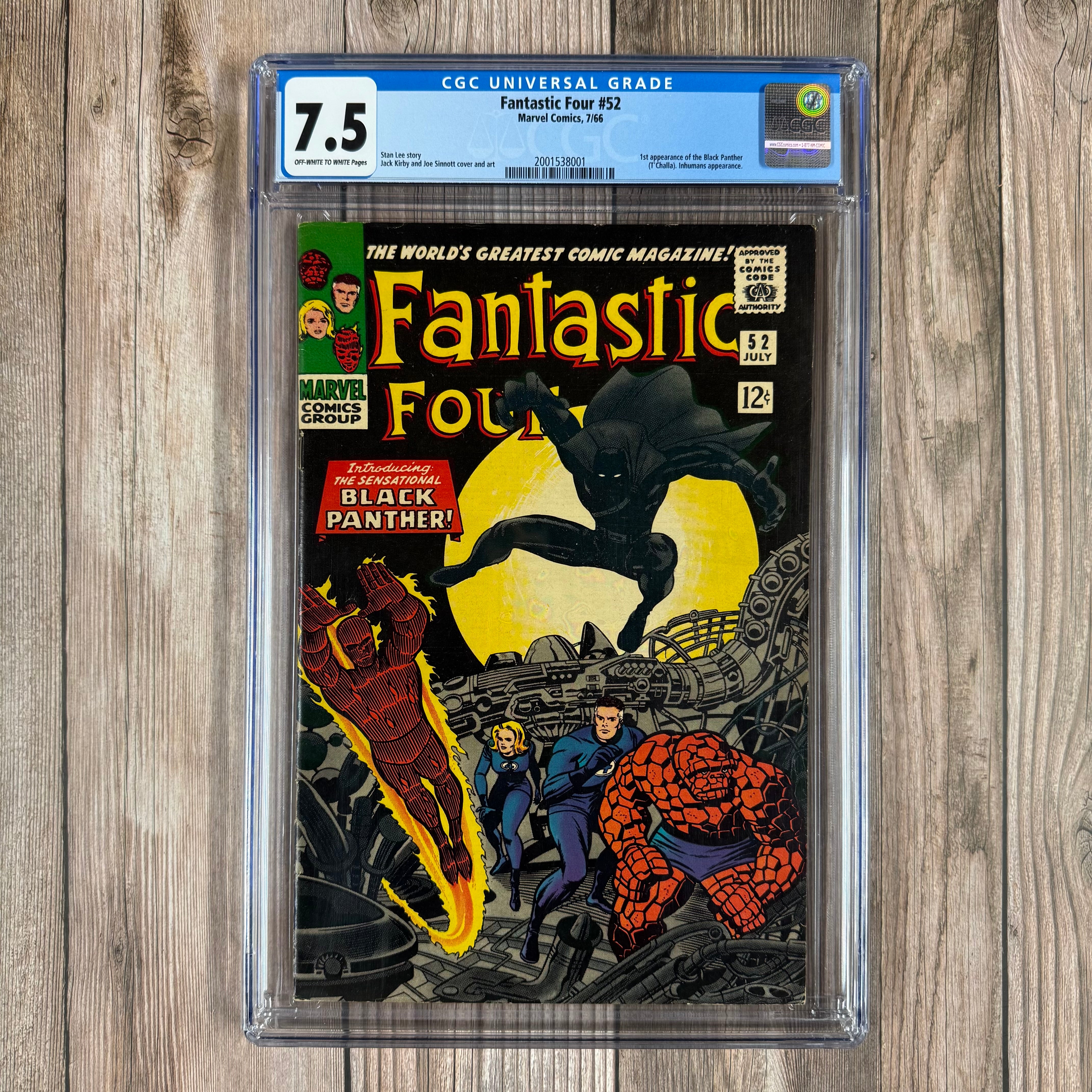 THE BLACK PANTHER! The Fantastic Four are given a flying craft by the nation of Wakanda as a gift, as part of an invitation to visit the mysterious African country. Intrigued by the technological marvel brought to them, Mister Fantastic agrees. Their visitor then contacts the leader of Wakanda, T'Challa, also known as the Black Panther. T'Challa and his people rejoice at the news and they raise the panther idol high before he enters the sacred temple and dons his ceremonial Black Panther garb. Back in the United States, the Fantastic Four go to Metro College to check on Johnny who is studying hard. When they tell him that they are going to Wakanda, Johnny asks if they can bring his friend Wyatt Wingfoot along with them. Meanwhile, within the Great Refuge of the Inhumans, the royal family continues to try to find a way to break out of the barrier around their city. Karnak attempts to use his abilities to see the flaws in any object to break through the barrier, but this proves to be a failure. As Maximus mocks his family from his cell, Black Bolt broods over what they must do next. Later, the Fantastic Four take the ship they were given to fly to Wakanda along with Wyatt. When they land the ship they are surprised to find themselves in a massive mechanical forest. Upon disembarking the ship they are suddenly attacked by the Black Panther. Caught off guard the group splits up and faces off against various traps, Wakandan guards, and the Black Panther himself. By themselves, each member of the Fantastic Four are no match for the Black Panther, but when they regroup they easily outnumber and overpower the Panther who ceases his hostilities. Unmasking, T'Challa reveals that he was merely testing the Fantastic Four's fabled abilities and has invited them to his land to for a grave task.