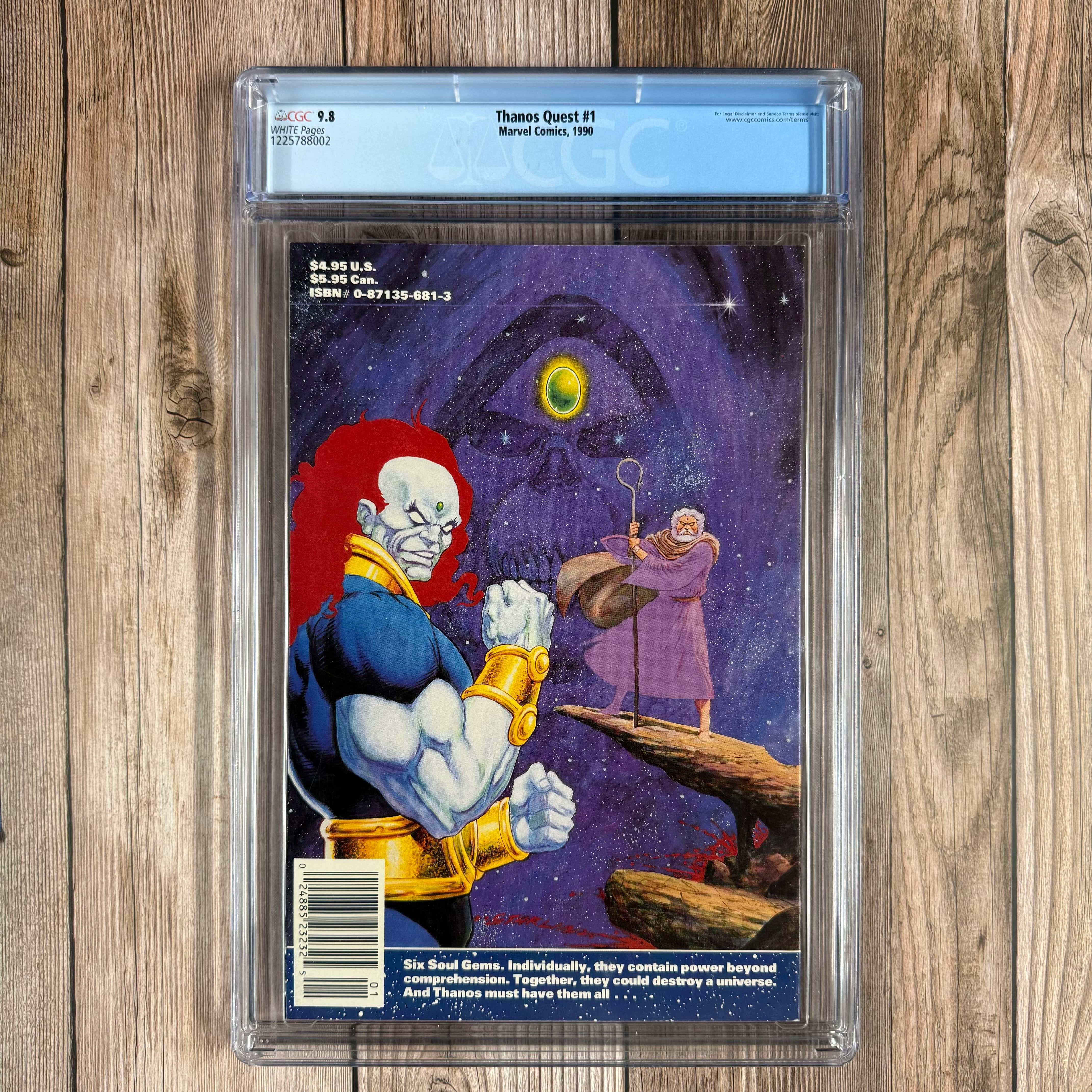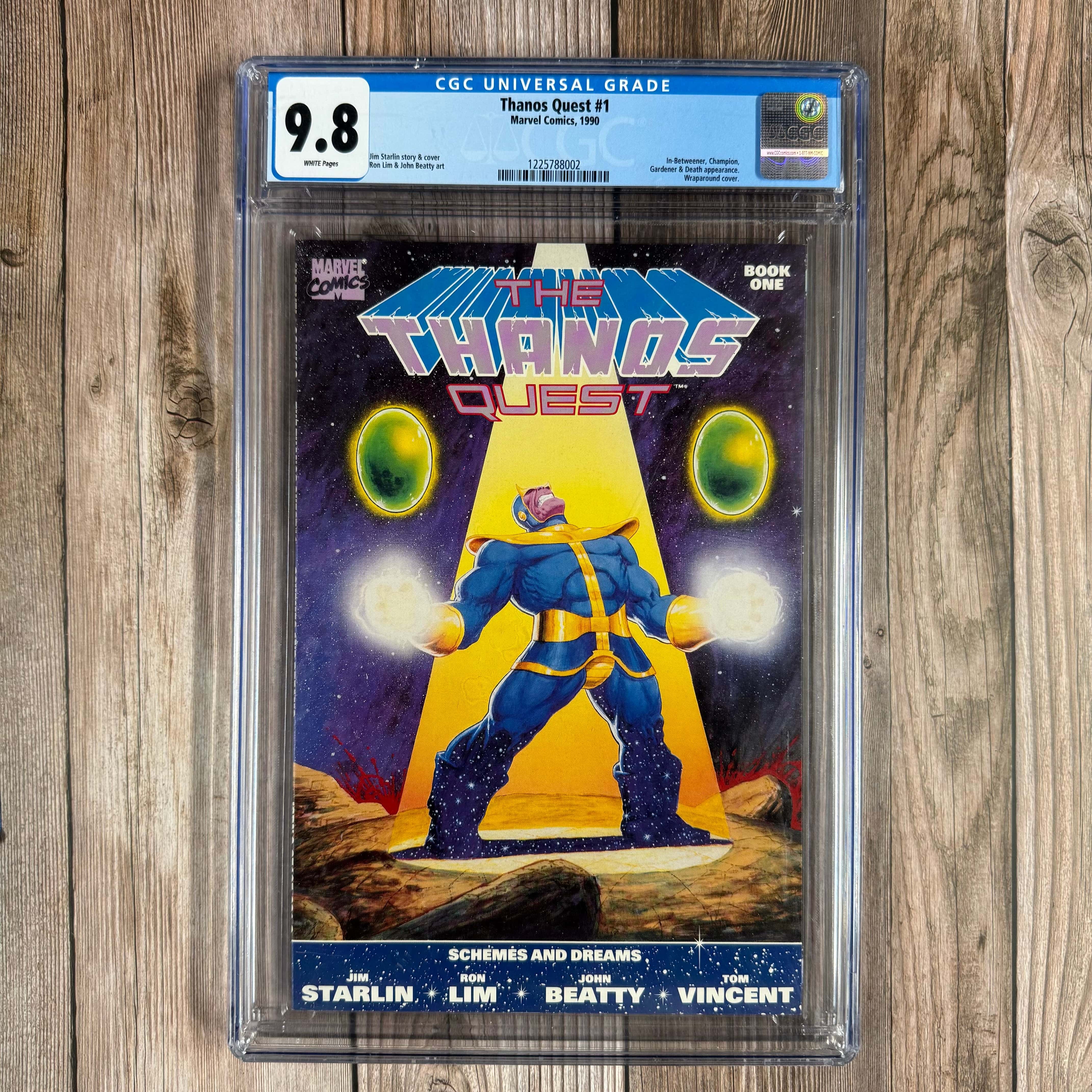 Thanos peers into the Infinity Well as Mistress Death tasks him with bringing balance to the universe by destroying half of all life. Realizing the enormity of the task, Thanos seeks the Infinity Gems to gain ultimate power. He outwits the In-Betweener to take the Soul Gem, defeats the Champion of the Universe for the Power Gem, and outsmarts the Gardener for the Time Gem — beginning his path toward assembling the complete Infinity Gauntlet.