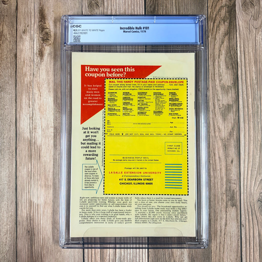Incredible Hulk #181 CGC 4.5 1st full appearance of Wolverine *Exceptional