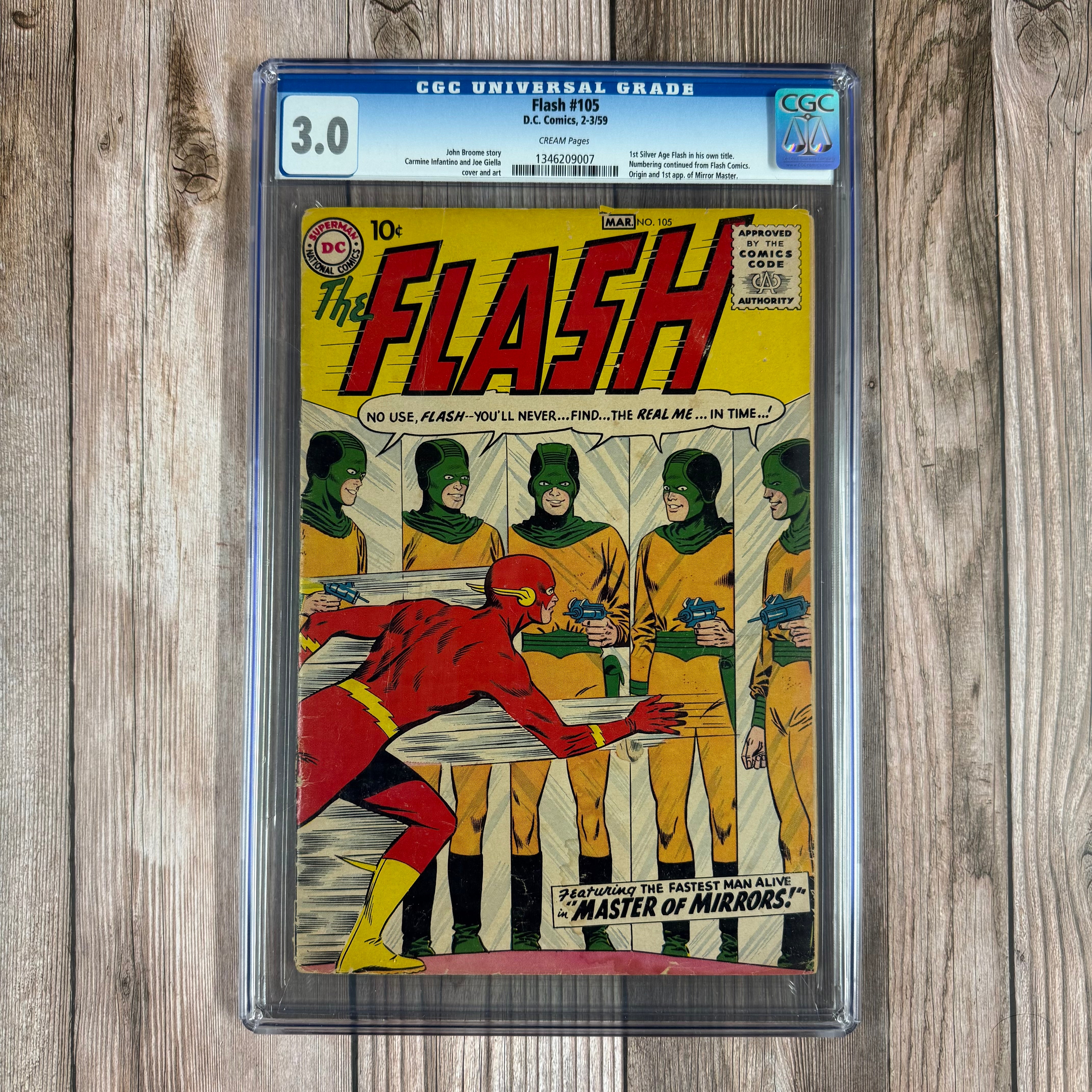 Flash #105 CGC 3.0 1st appearance and origin of Mirror Master, 1st Barry Allen in Flash title