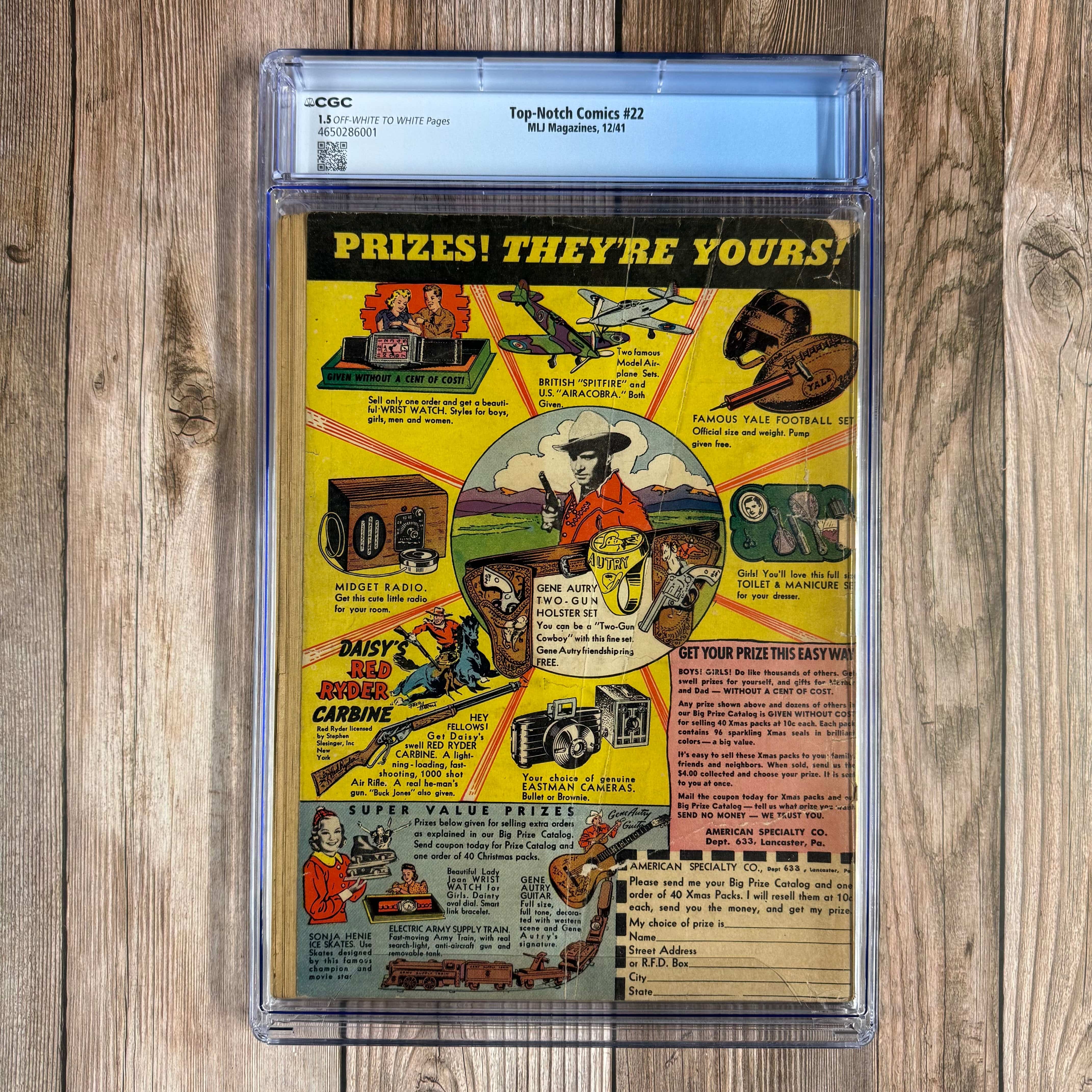 Top-Notch Comics #22 CGC 1.5 first appearance of Archie Andrews (in ad) Trade Avail.*