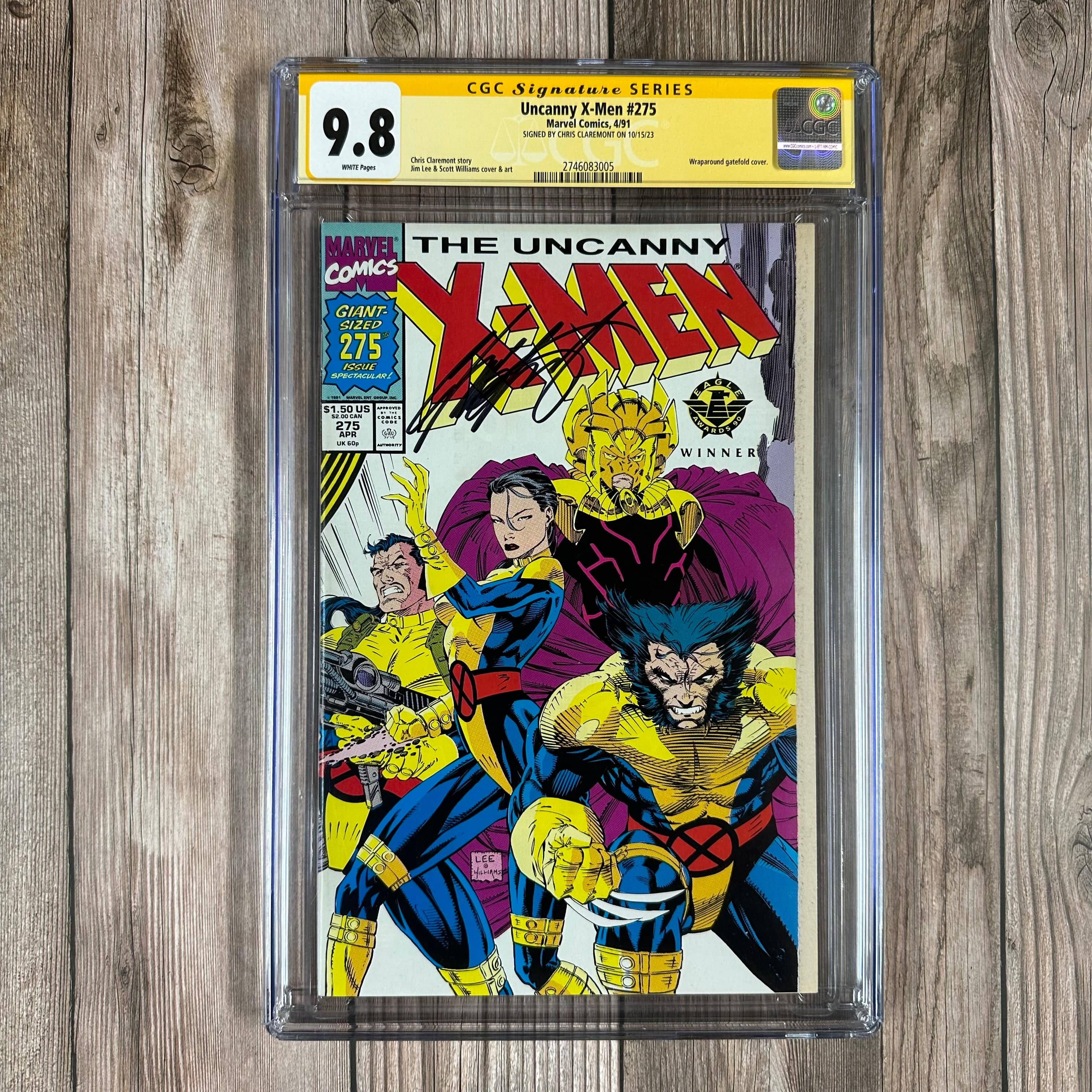 Uncanny X-Men #275 CGC 9.8 WP SS Signed by Chris Claremont Wraparound gatefold cover, Cover Art by Jim Lee (cert:3005)