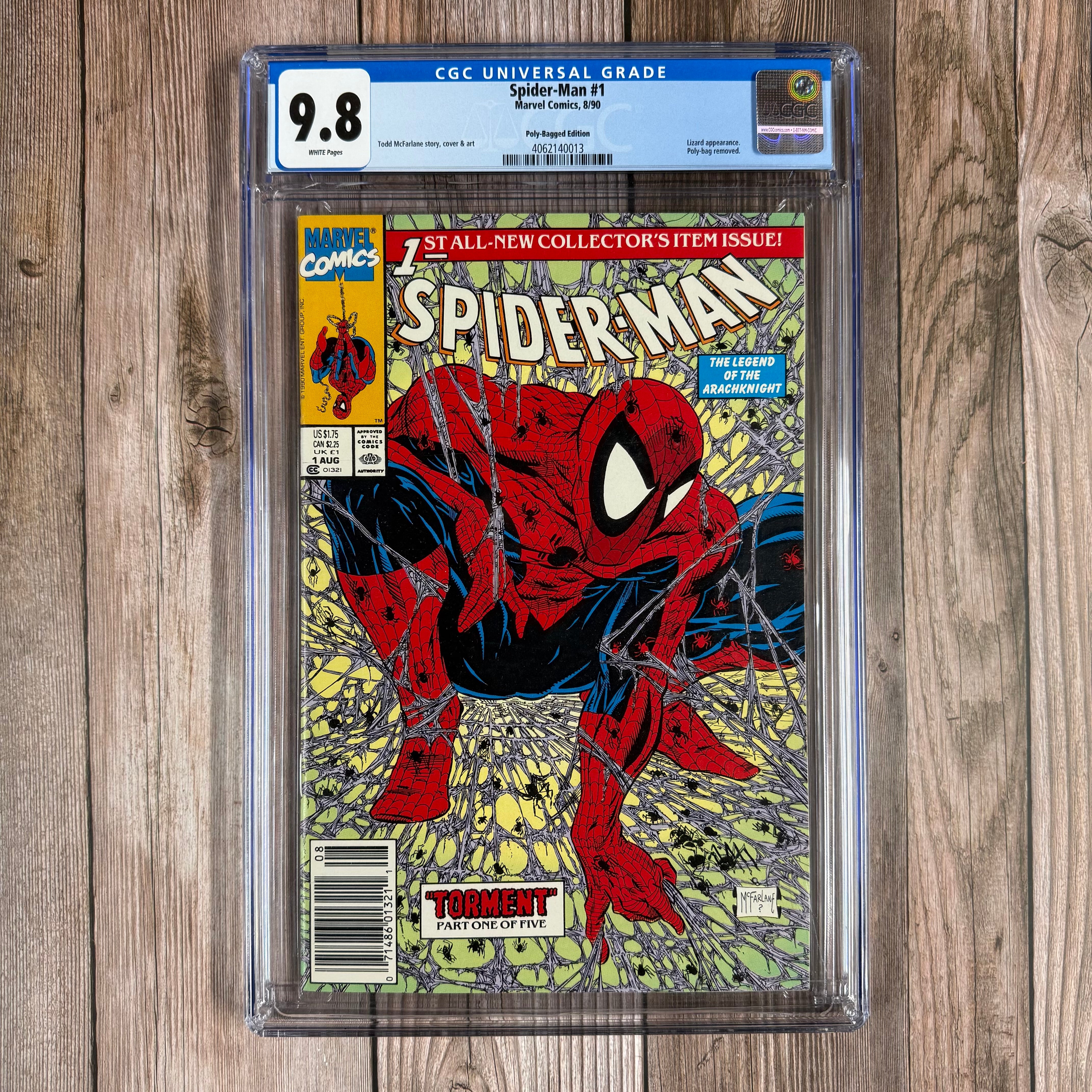 Spider-Man #1 CGC 9.8 WP Premiere issue of the 4th ongoing Spider-Man series, NEWSSTAND Poly-Bagged Edition