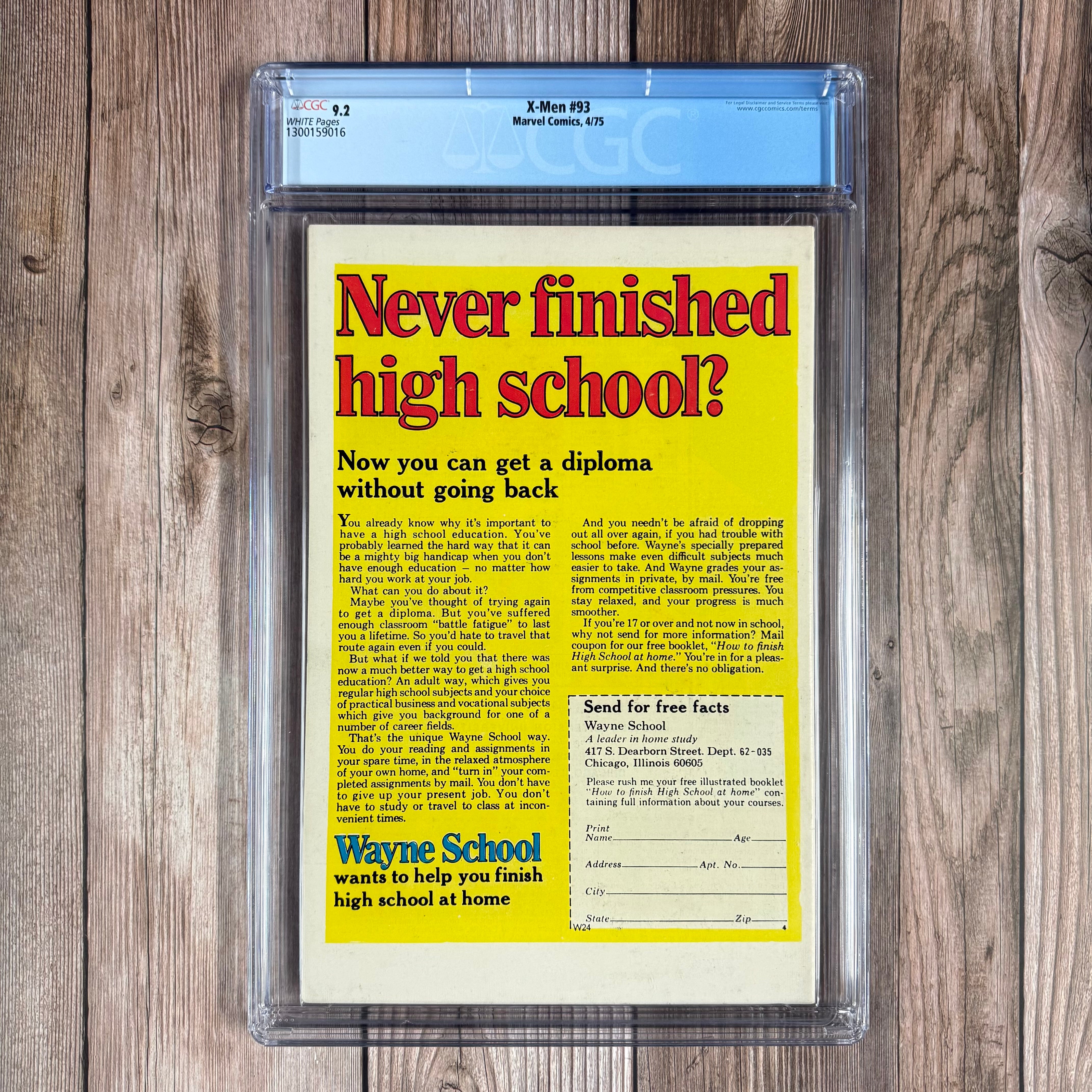 X-Men #93 CGC 9.2 WP Cover Art by John Buscema WILBUR*