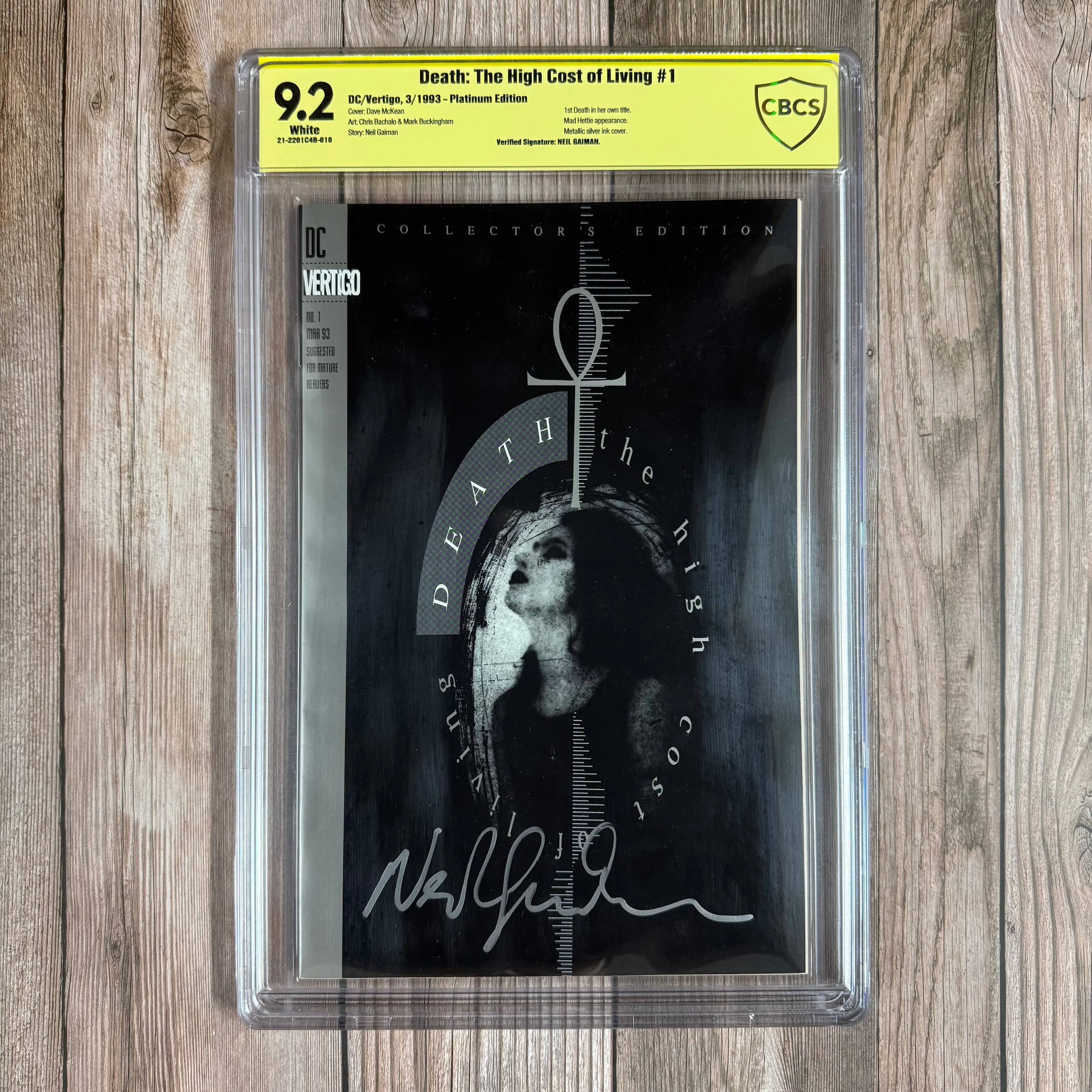 Death: The High Cost of Living #1 CBCS 9.2 WP Platinum Edition, Verified Signature of Neil Gaiman, 1st appearance of Death in her own title (Cert:010)