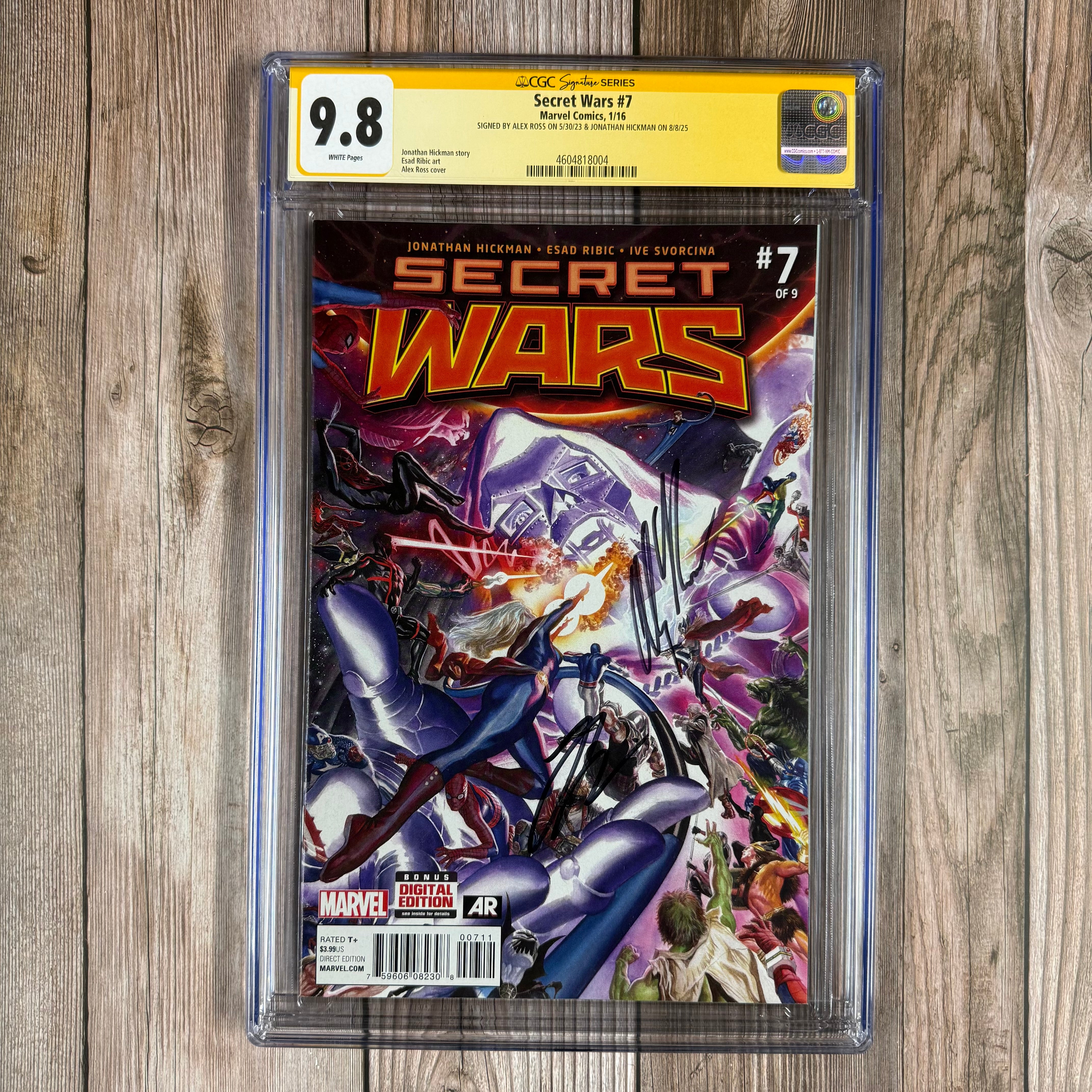 Secret Wars #7 CGC 9.8 WP SS Signed by Alex Ross and Jonathan Hickman (cert:8004)