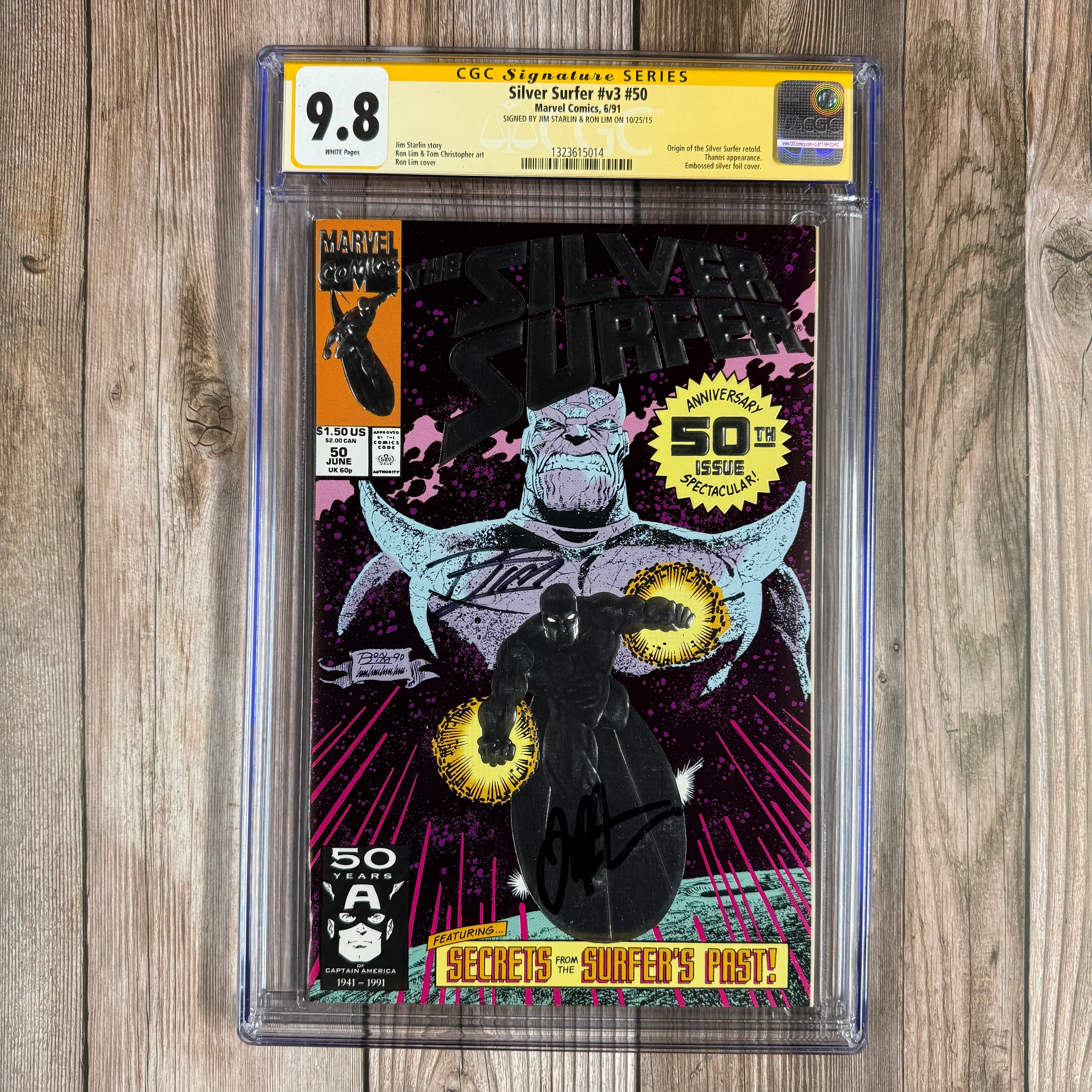 Silver Surfer #50 CGC 9.8 WP SS Signed by Jim Starlin and Ron Lim 1st foil-embossed comic cover (cert:5014)