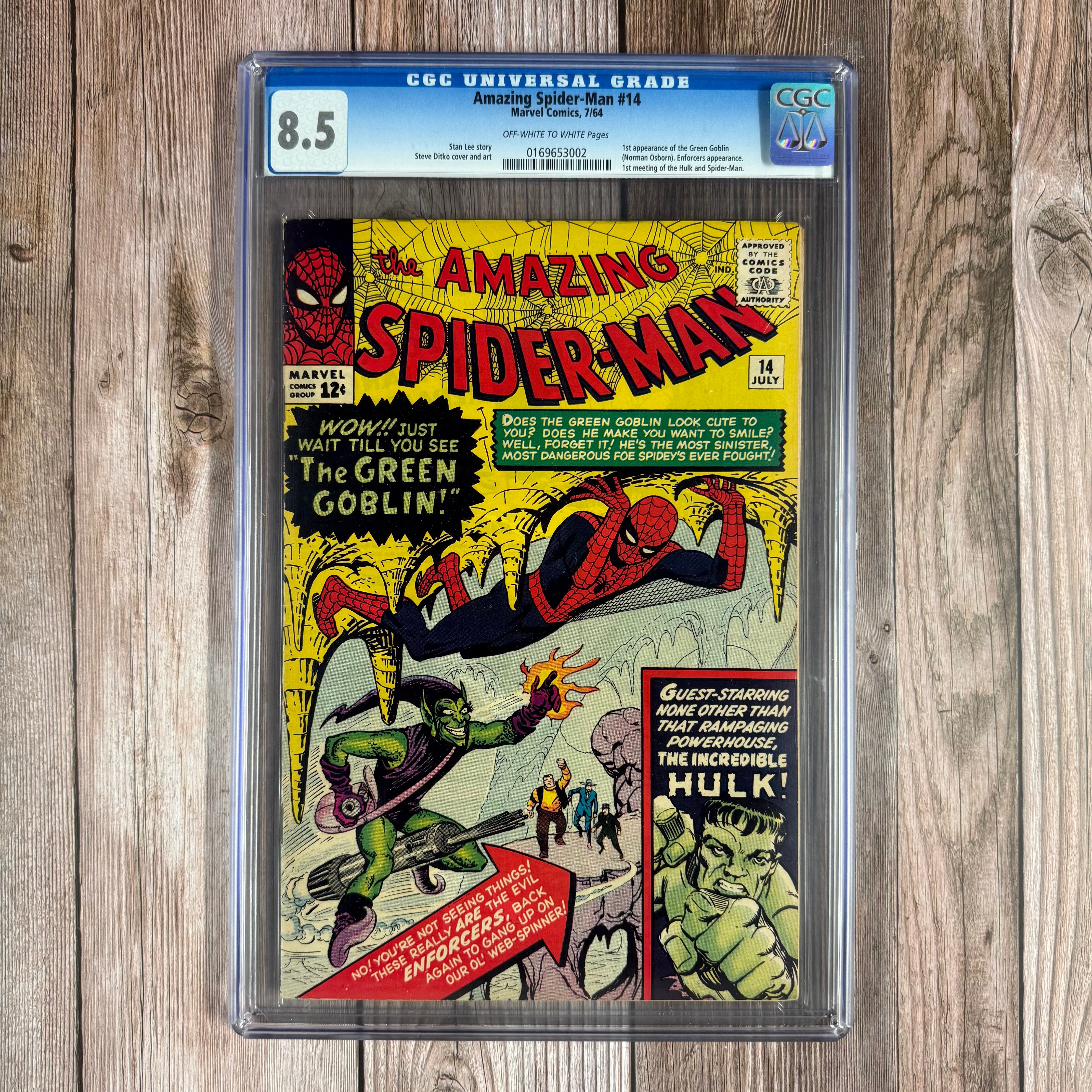 Amazing Spider-Man #14 CGC 8.5 1st appearance of the Green Goblin, 1st Spider-Man vs Hulk battle *Trade Avail.