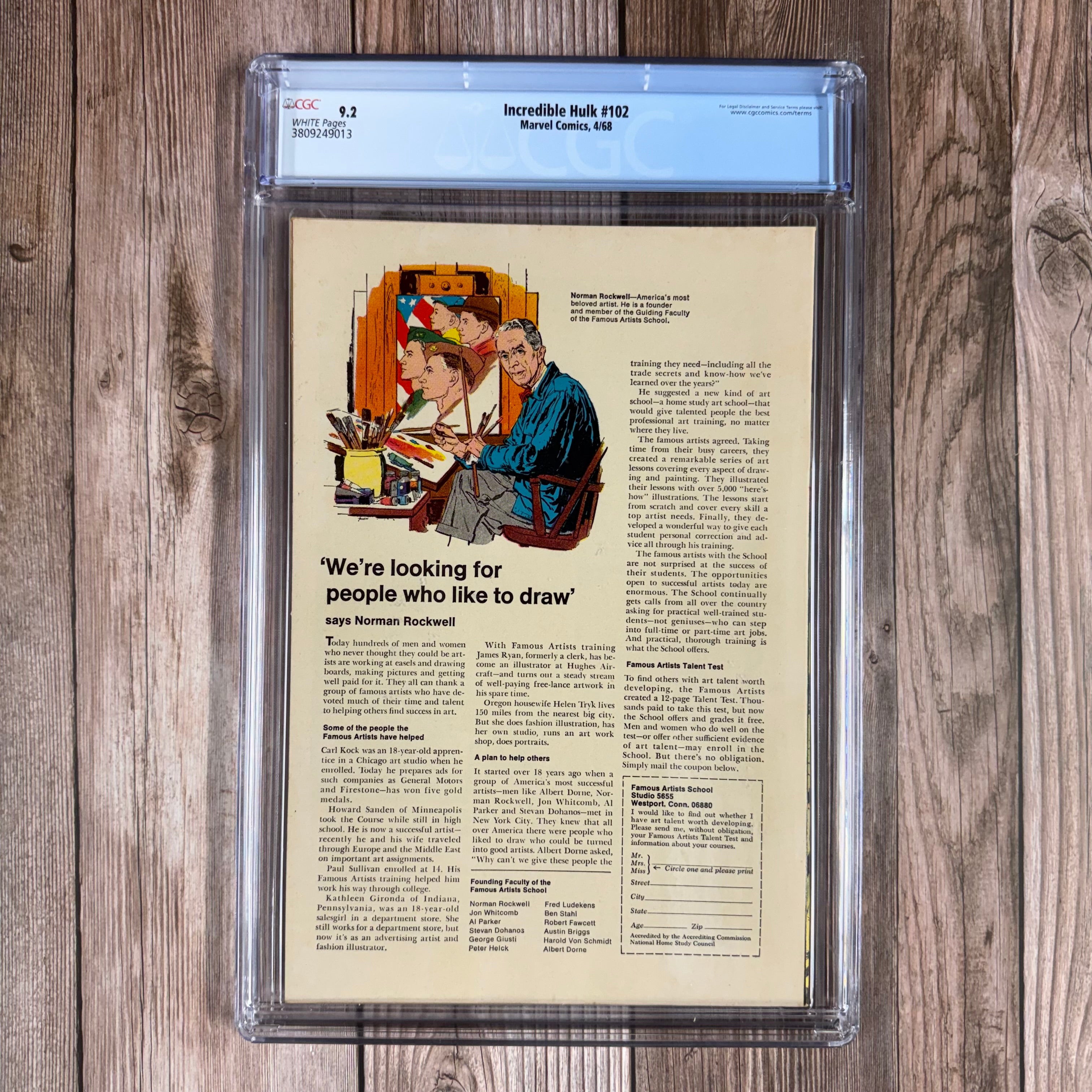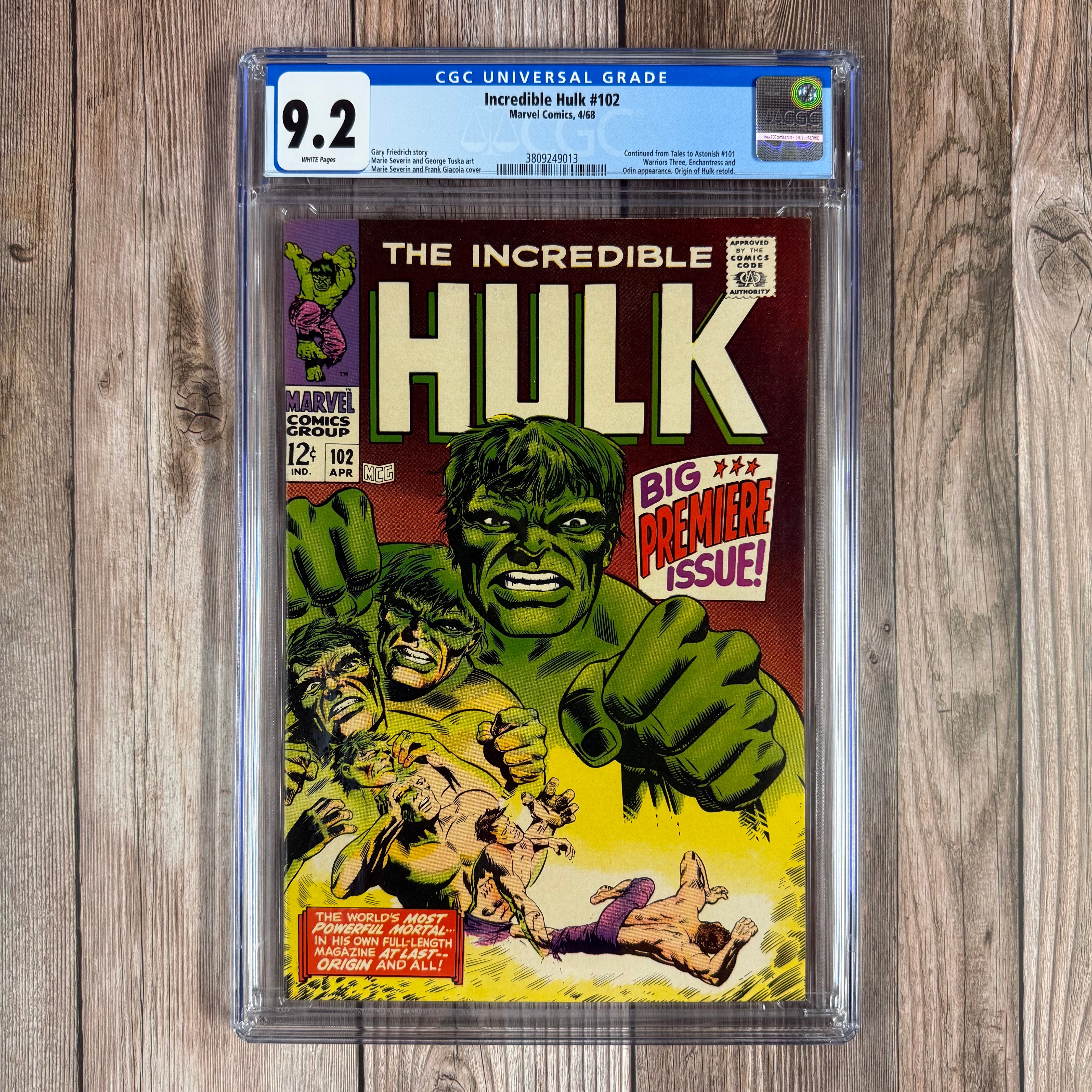Incredible Hulk #102 CGC 9.2 WP Title resumed from Tales to Astonish, Origin of Hulk Retold