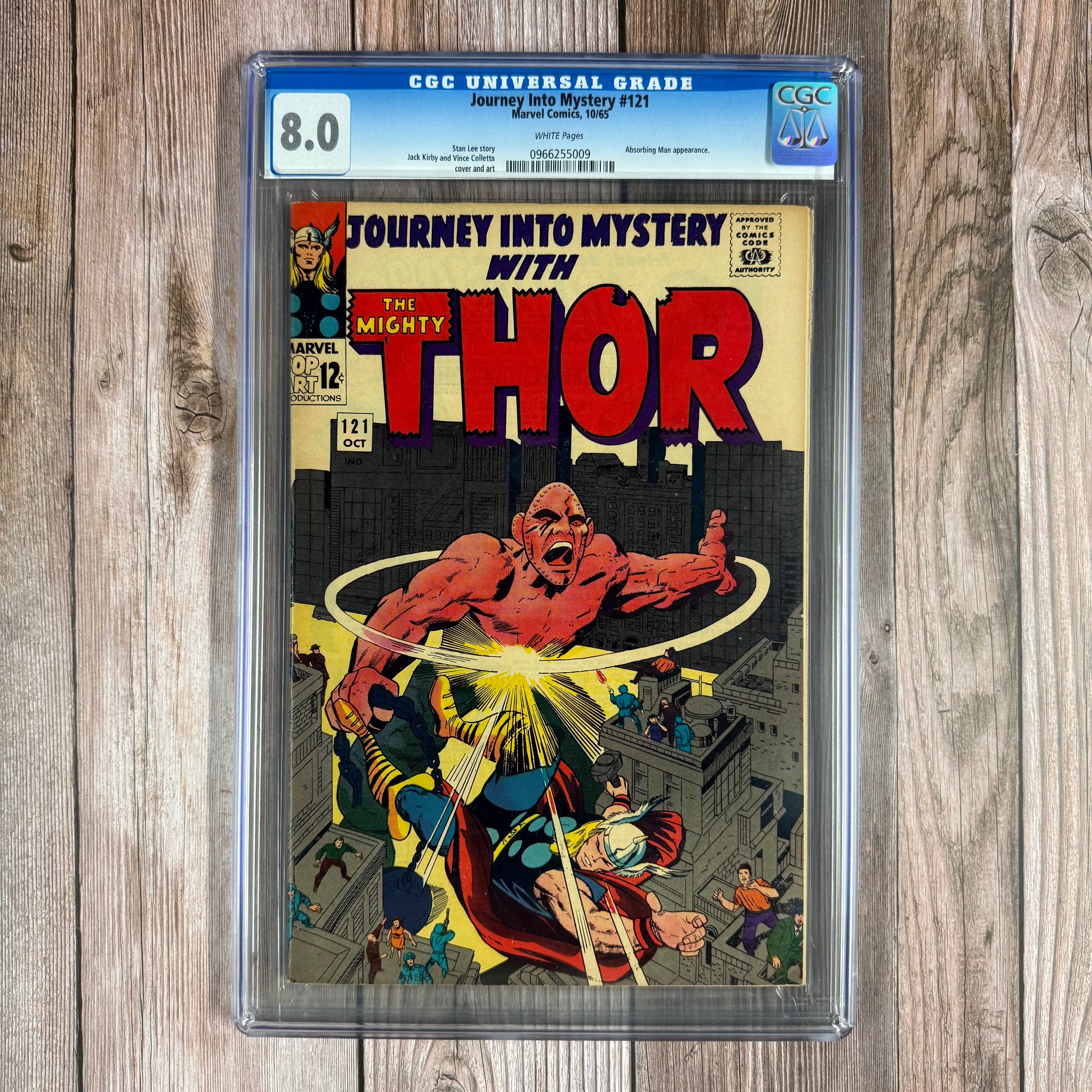 Journey Into Mystery #121 CGC 8.0 WP ICONIC cover art by Jack Kirby featuring Thor vs Absorbing Man