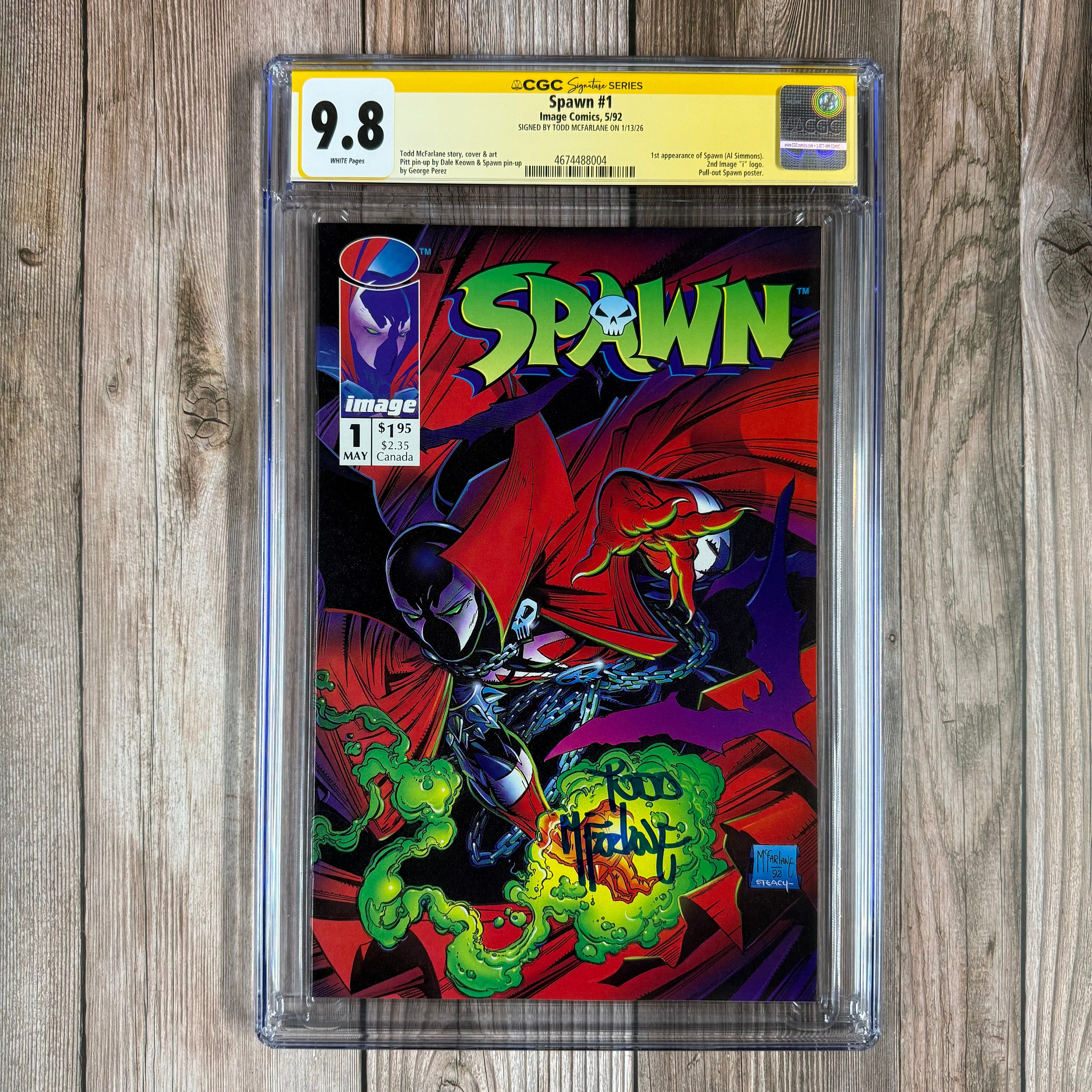 Spawn #1 CGC 9.8 WP SS Signed by Todd McFarlane 1st appearance of Spawn, Sam & Twitch and Malebolgia (cert:8004)